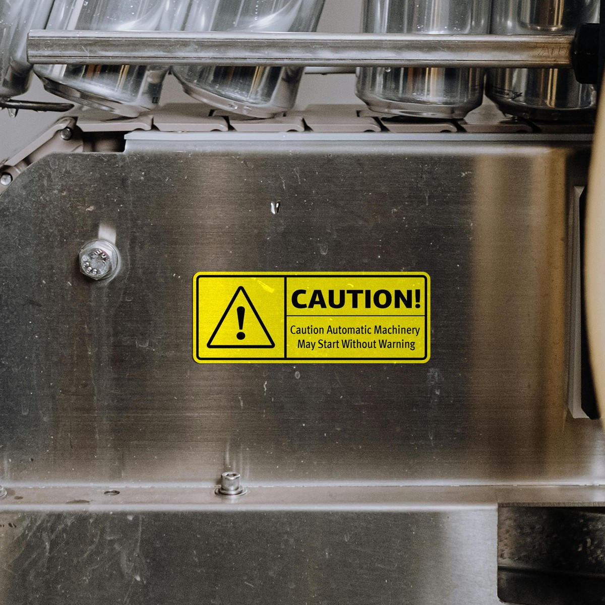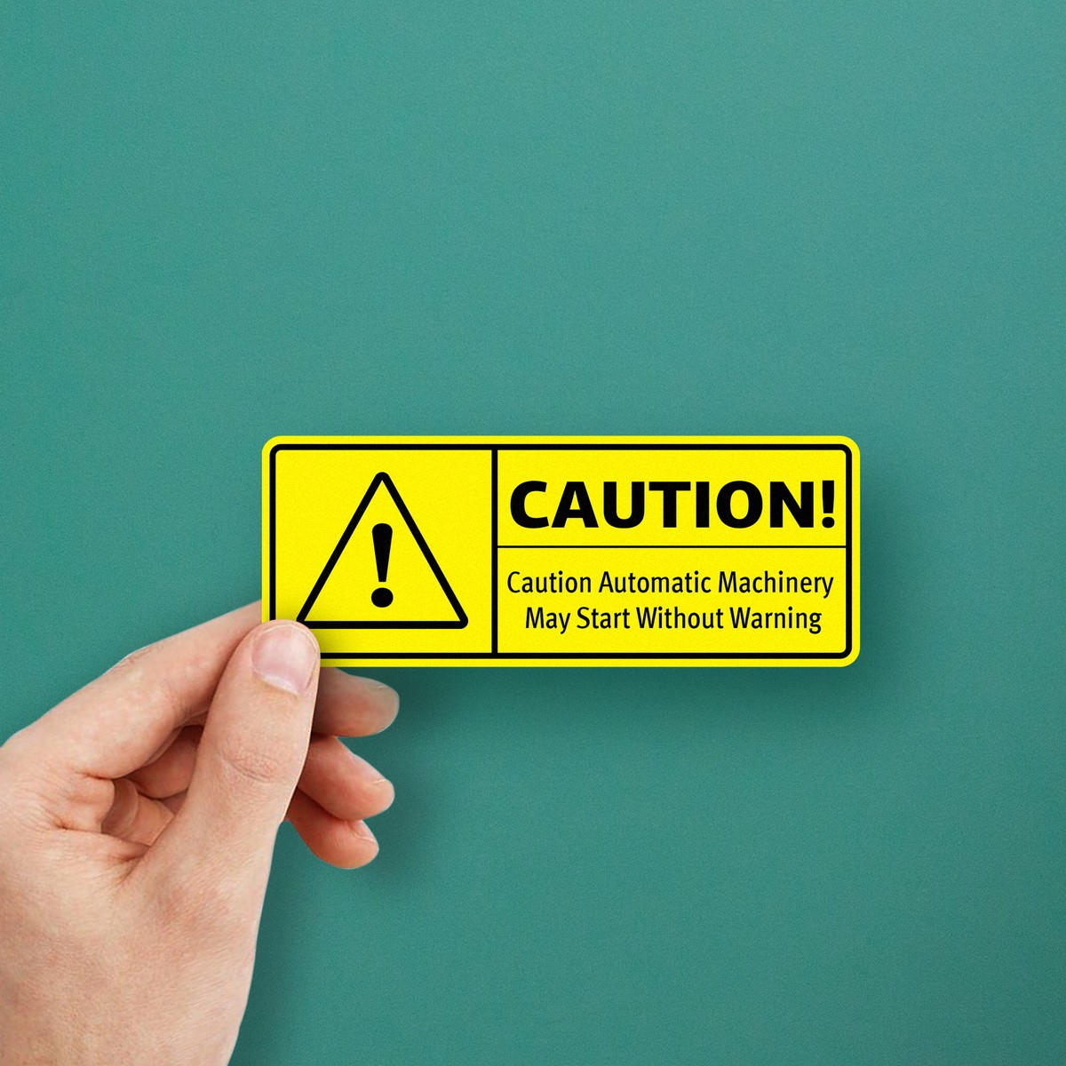 Ensure the safety of your workplace with this high-visibility “Caution Automatic Machinery” warning sign decal. Designed to alert workers of the potential dangers posed by automatic machinery starting without warning, this decal is an essential safety measure for industrial environments. Made from durable, waterproof vinyl, it is built to withstand tough conditions, ensuring long-lasting performance. The easy peel-and-stick application allows for quick installation on machinery, walls, or other surfaces, without leaving any sticky residue. Available in multiple sizes, this safety sign is ideal for industrial worksites where clear hazard communication is a priority.