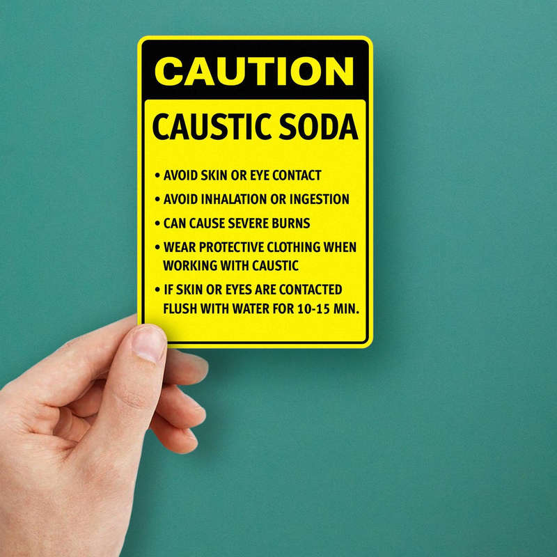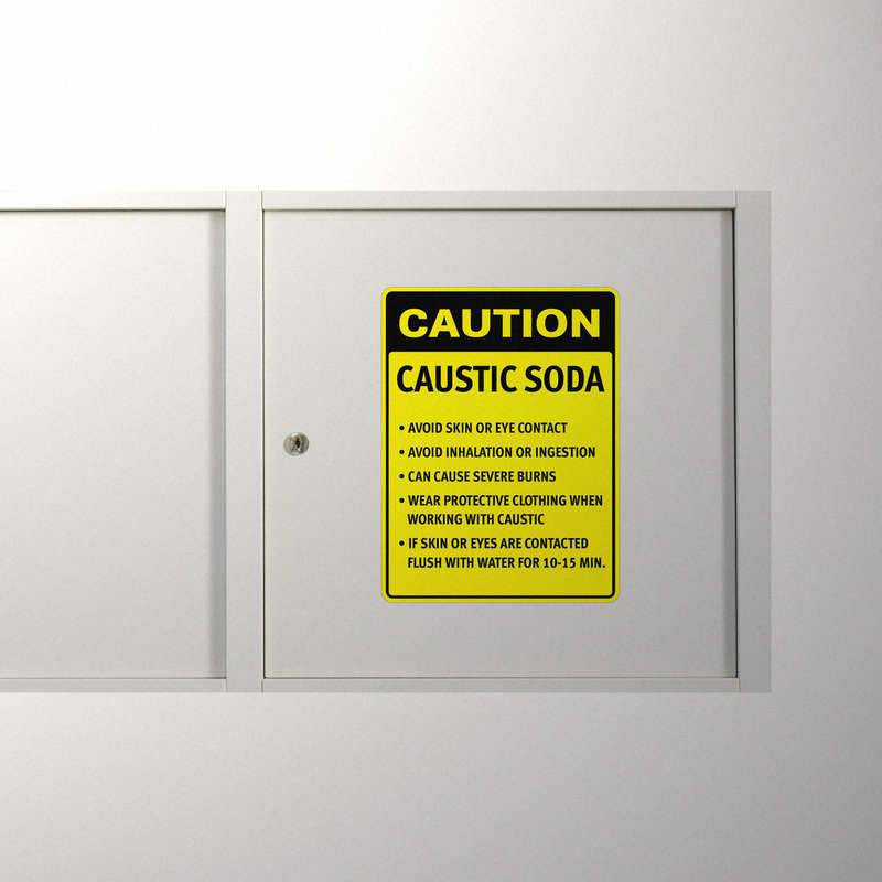 Enhance workplace safety with this highly visible “Caution: Caustic Soda” safety sticker, crafted from durable, weather-resistant vinyl. The bold black and yellow design ensures easy readability, while its compact 8×10-inch size makes it suitable for various surfaces, including walls and machinery. Designed to withstand exposure to harsh chemicals and environments, this sticker offers clear warnings to protect your team from potential harm. Easy to apply and remove, it’s an essential tool for promoting safety in industrial settings. Available in multiple size options to fit your specific needs.