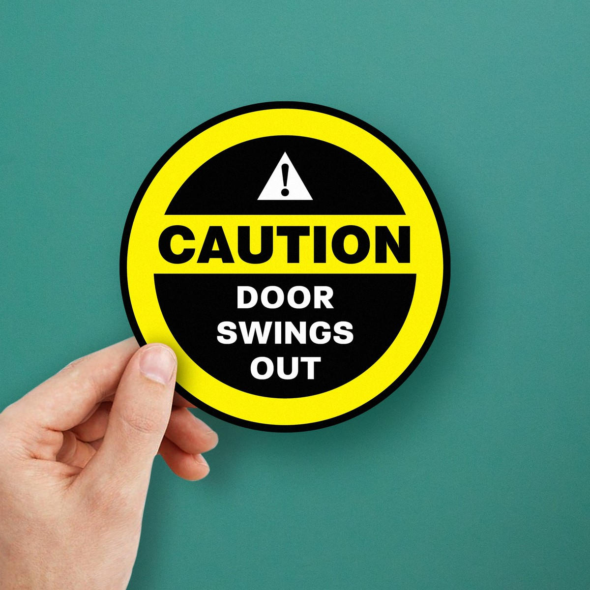 Ensure safety in your workplace or public space with this “Caution Door Swings Out” vinyl sticker. Featuring a round design and bold, high-contrast colors, this durable decal effectively warns people of potential door hazards, reducing the risk of accidents. Crafted from weather-resistant vinyl, it’s suitable for both indoor and outdoor use. The strong adhesive backing ensures the sticker stays securely in place, but it can also be removed easily without leaving any sticky residue. Available in multiple sizes, this safety decal is ideal for busy areas like workplaces, industrial sites, and public buildings where door hazards may occur.