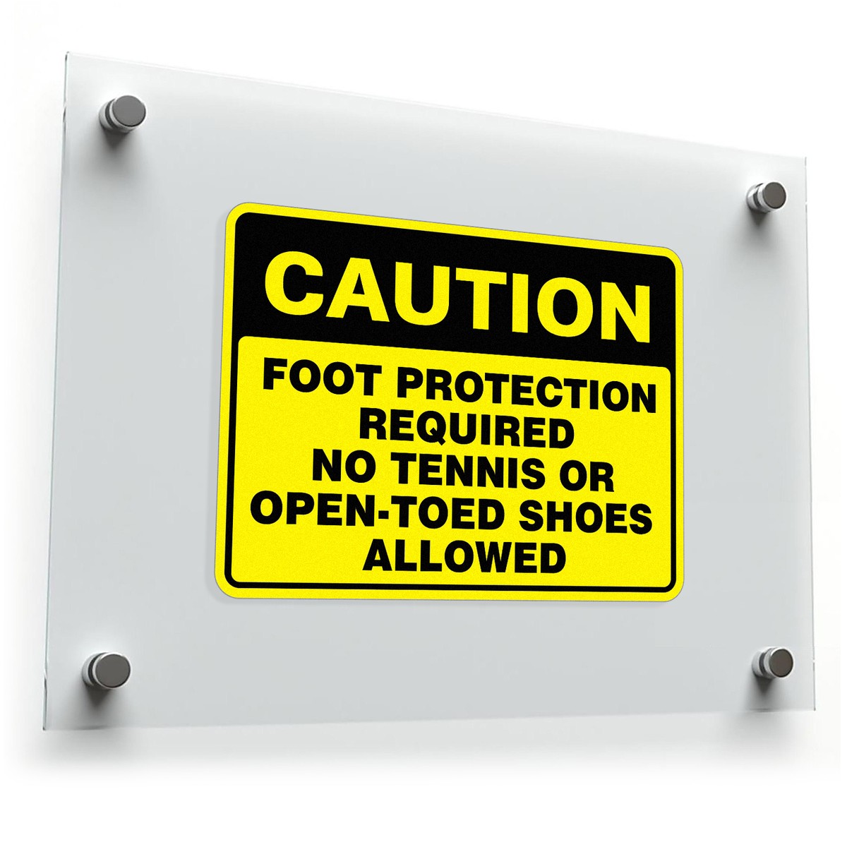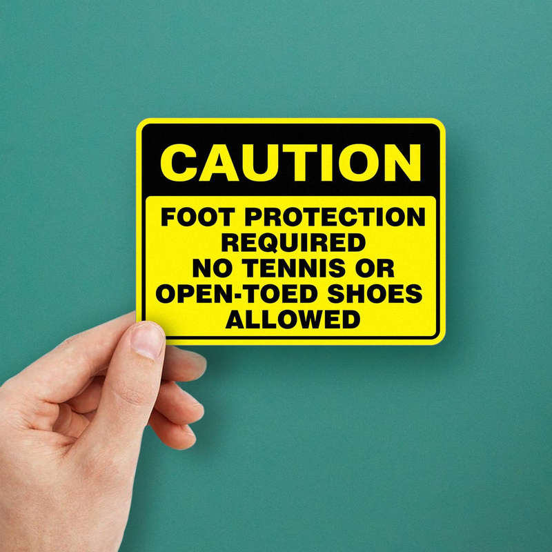 Reinforce workplace safety with this “Caution Foot Protection Required” sticker, designed to communicate clear and essential footwear requirements. Its bold yellow and black design ensures high visibility, making it perfect for high-traffic areas or industrial zones. Crafted from durable vinyl, this decal is weatherproof and resistant to fading, ensuring long-lasting clarity both indoors and outdoors. The adhesive backing allows for smooth application to walls, doors, or equipment, with clean removal when necessary. At 8×6 inches, this sticker is perfectly sized to deliver its message effectively while fitting seamlessly into various environments, promoting safety and compliance.