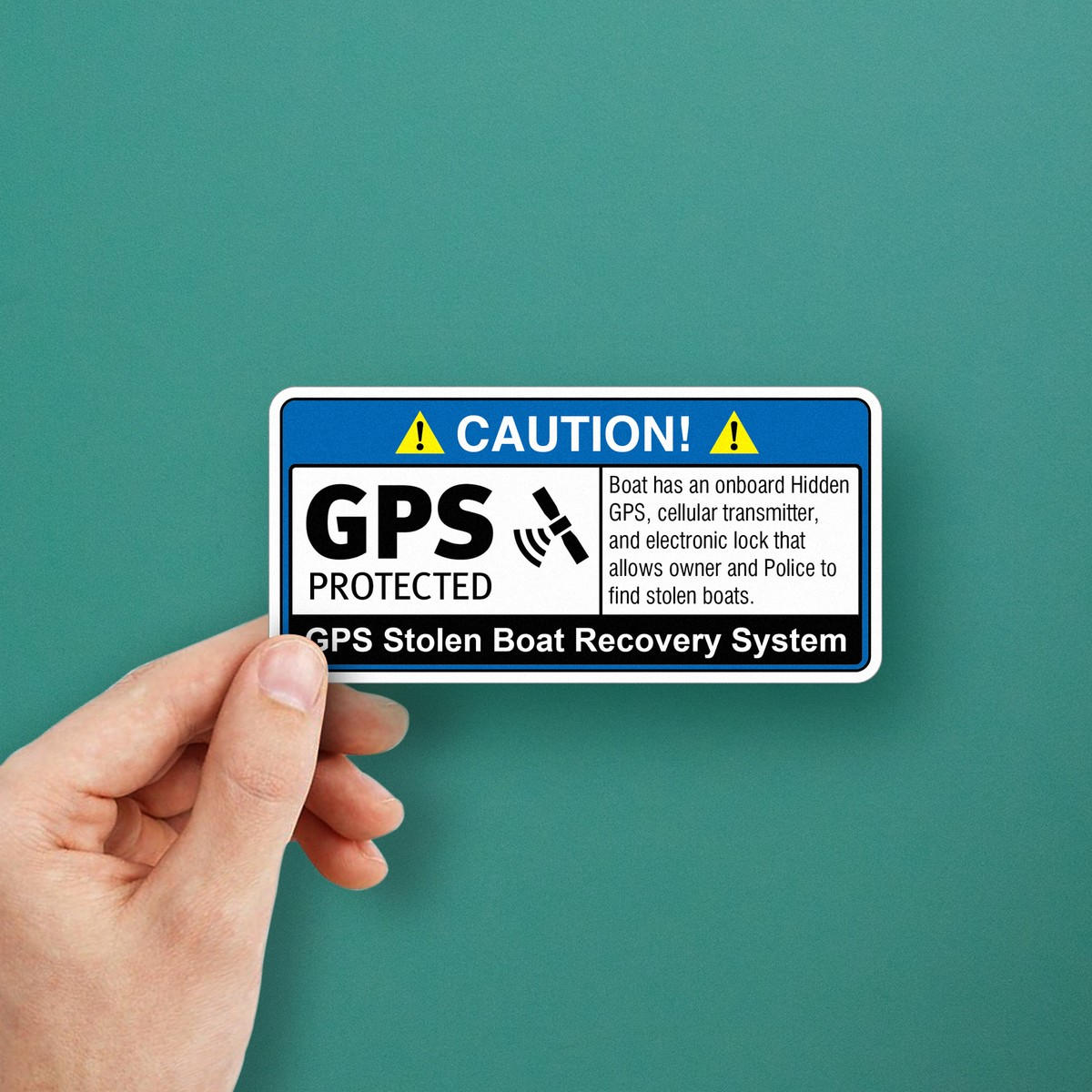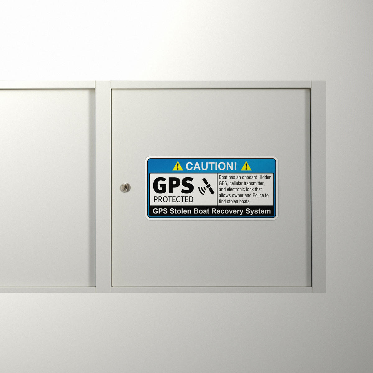Enhance your boat’s security with this “Caution: GPS Protected” vinyl sticker, designed to warn potential thieves of advanced recovery systems onboard. With a hidden GPS, cellular transmitter, and electronic lock, this decal provides a clear deterrent, helping owners and law enforcement locate stolen boats quickly. Made from durable, weather-resistant vinyl, this high-visibility sticker is ideal for use on boats, docks, or marina security stations. Its bold design ensures visibility in both indoor and outdoor environments, giving you peace of mind while protecting your valuable assets. Available in multiple sizes for versatile use.