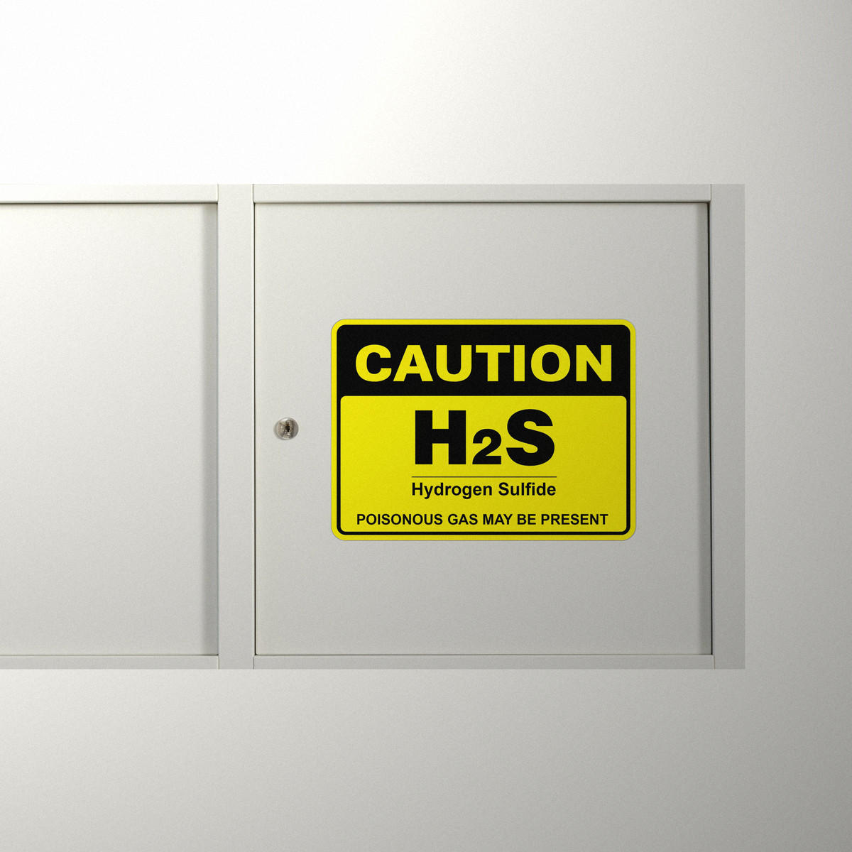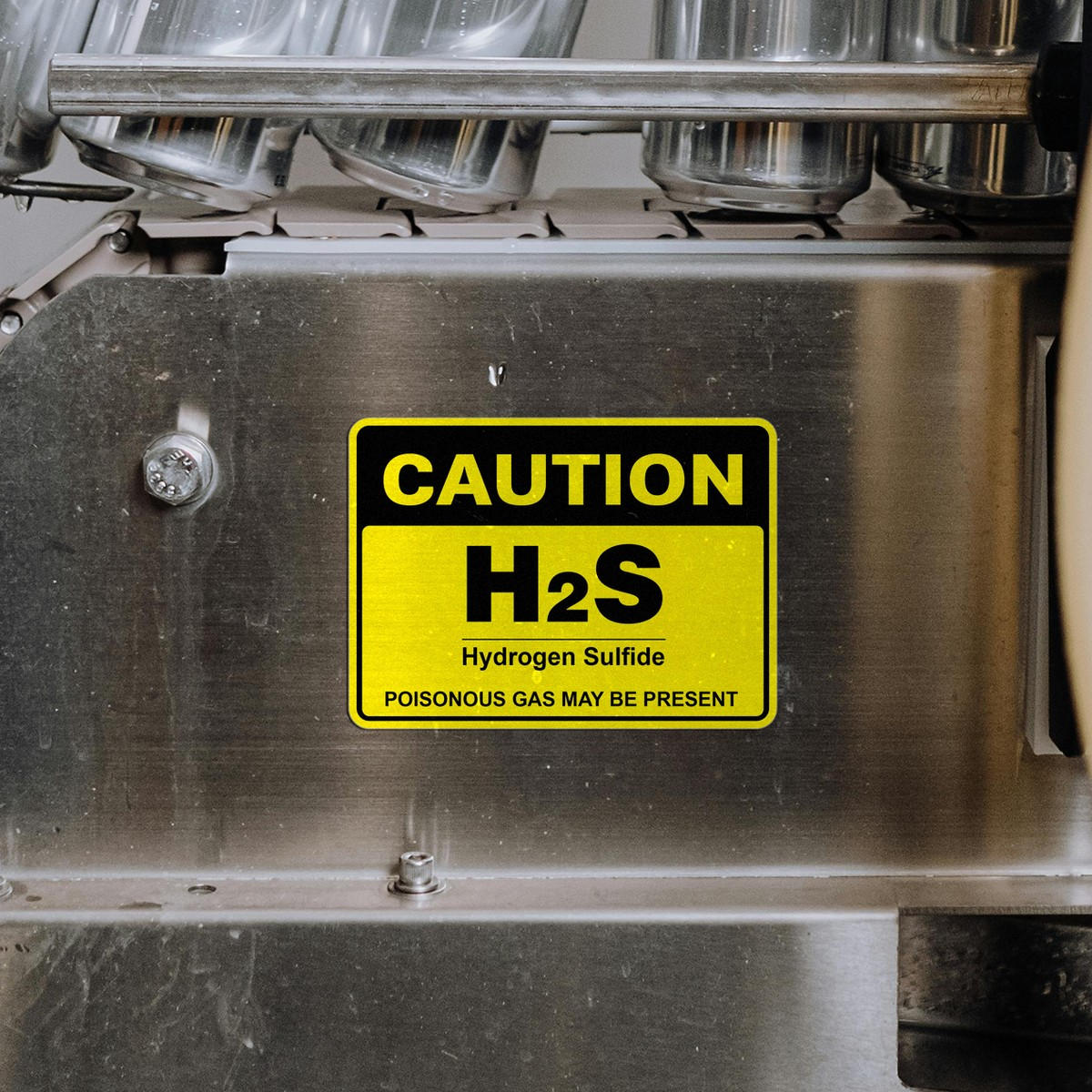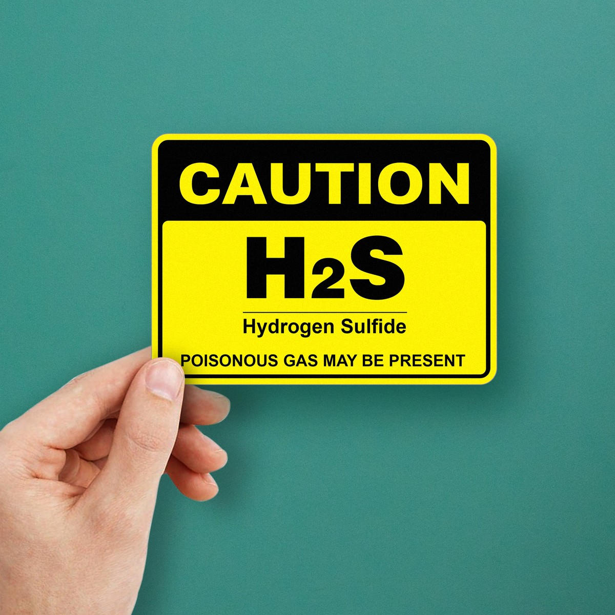 “Caution H2S Hazard” Safety Sticker ⚠️ Critical Safety Warning: This “Caution H2S” sticker provides clear and essential safety information, alerting workers to the presence of hazardous hydrogen sulfide gas. ⚠️