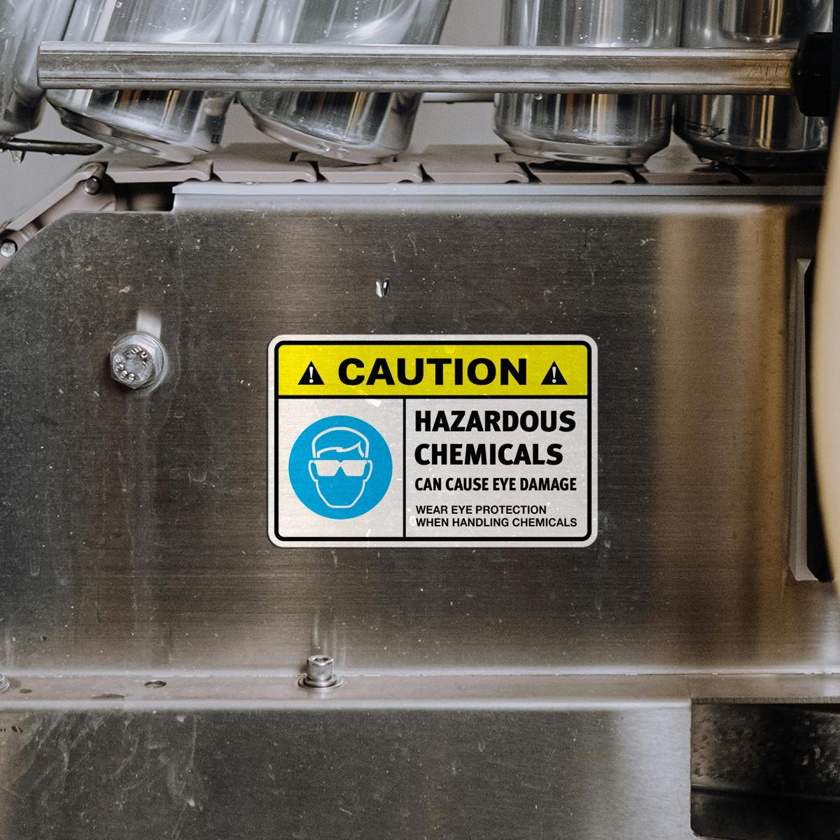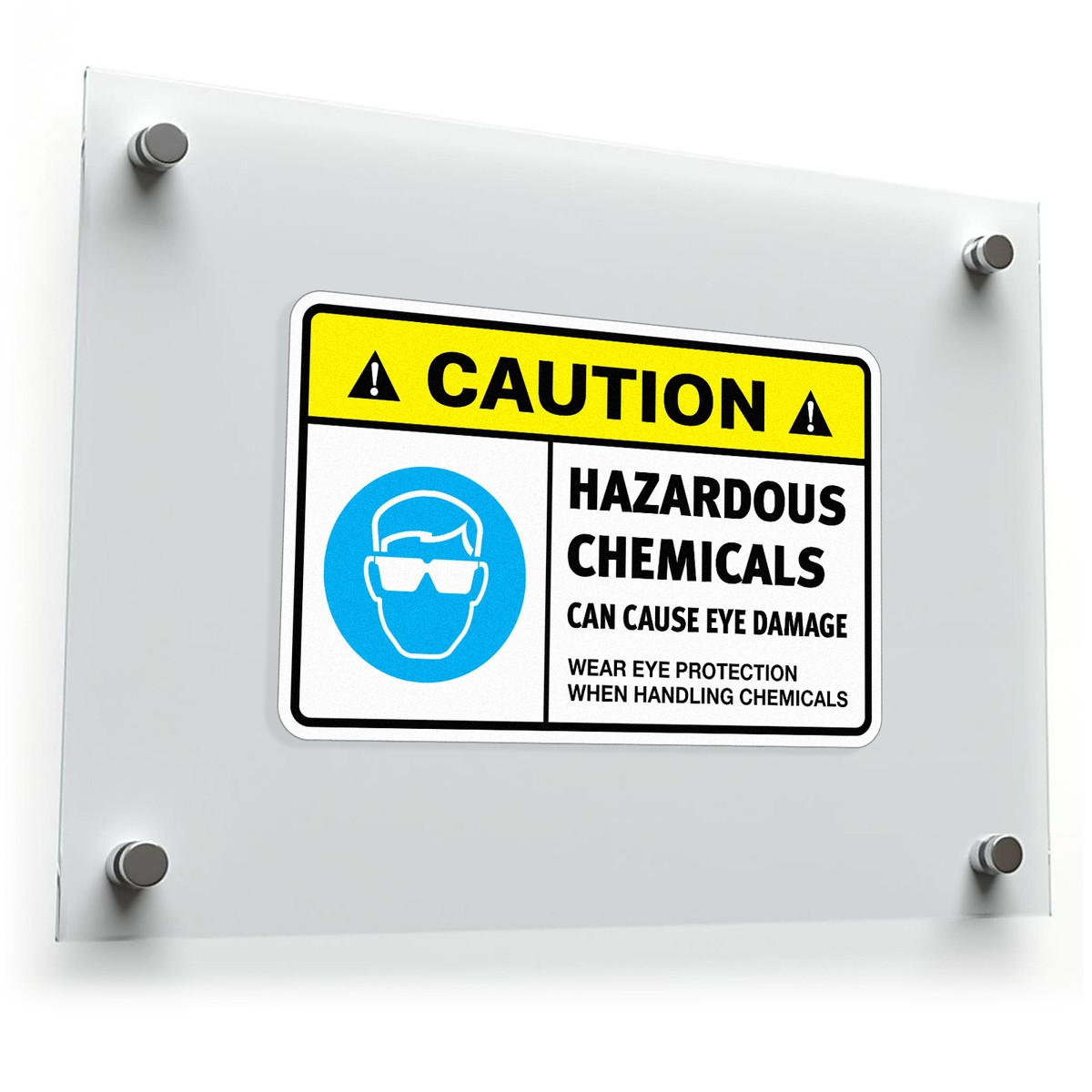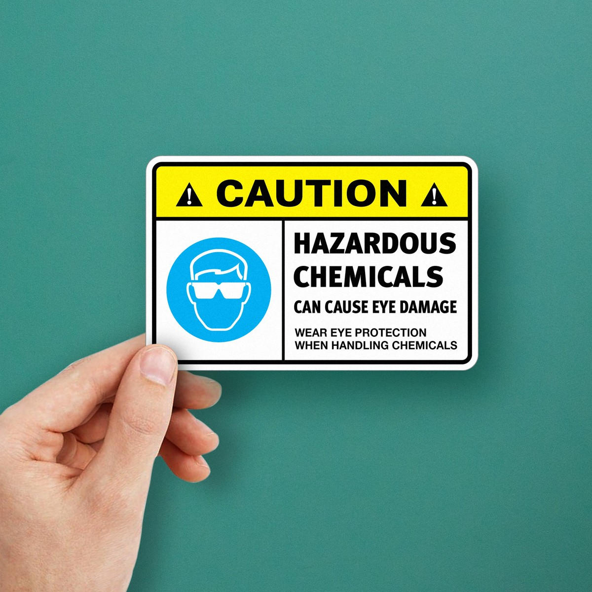 Promote safety in your workplace with this “Caution Hazardous Chemicals” sticker. Designed to warn of potential chemical hazards and the risk of eye damage, this durable vinyl decal is perfect for industrial settings such as factories, labs, and storage areas. Its clear message reminds employees to wear eye protection, helping maintain compliance with safety protocols. Suitable for both indoor and outdoor use, this sticker is available in multiple sizes to ensure maximum visibility. Easy to apply and remove, it’s an essential tool for keeping your workspace safe and compliant.