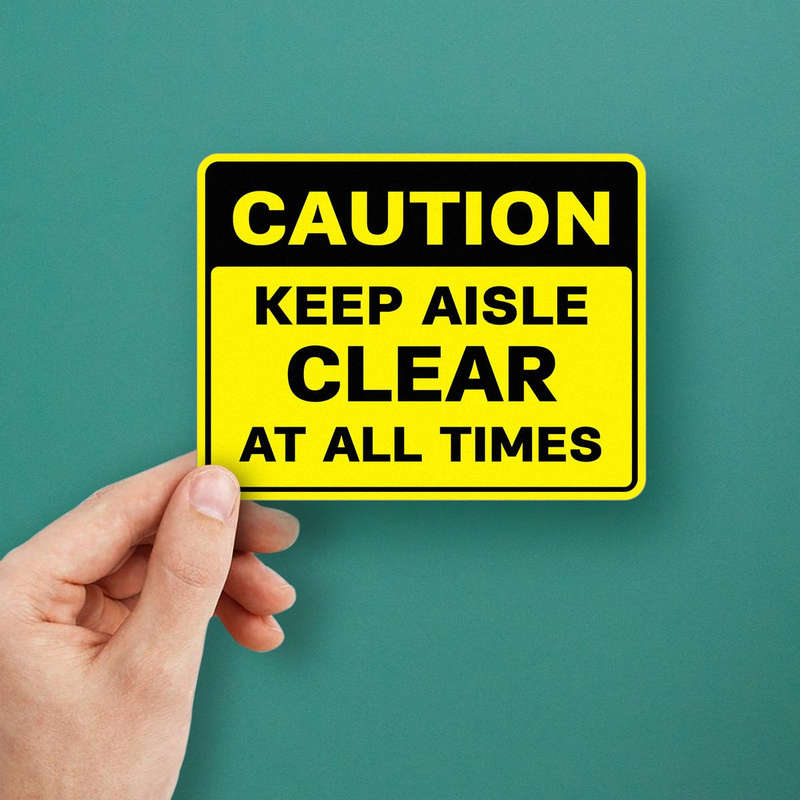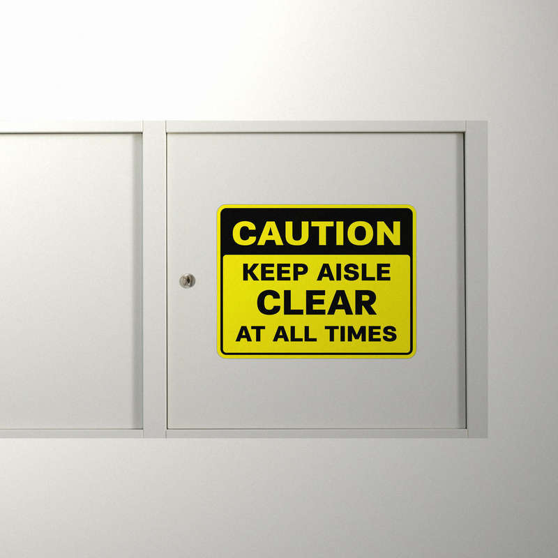 Enhance safety in your workplace with this “Caution Keep Aisle Clear At All Times” sticker, designed to prevent obstructions and promote hazard-free environments. The bold yellow and black design with clear text ensures visibility, even in high-traffic industrial areas. Made from durable, weather-resistant vinyl, this decal maintains its effectiveness in both indoor and outdoor conditions. Its easy application and residue-free removal make it a practical choice for temporary or permanent safety signage. Ideal for warehouses, factories, and storage areas, this sticker combines functionality and professionalism, helping ensure compliance with workplace safety protocols. Available in multiple sizes for your specific needs.