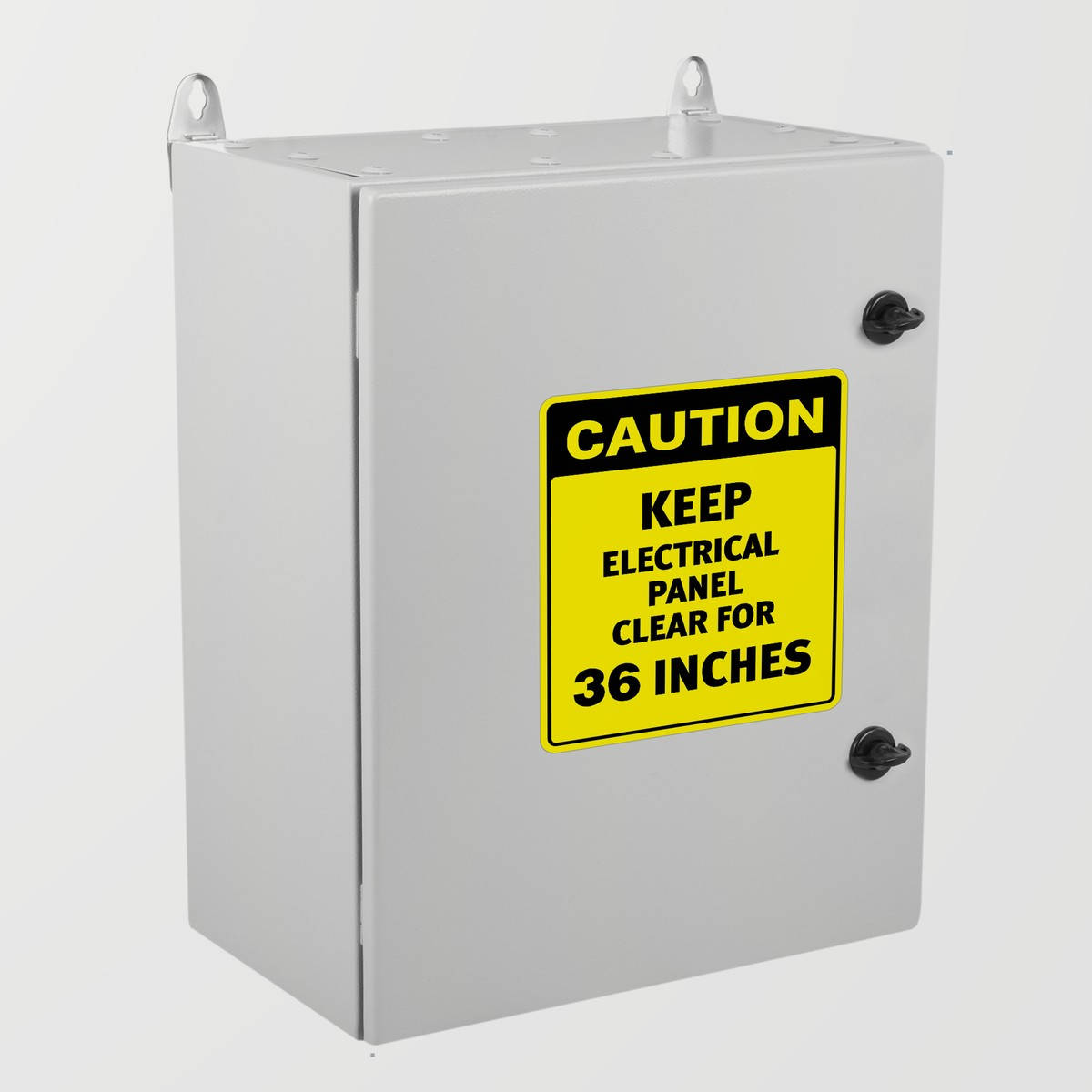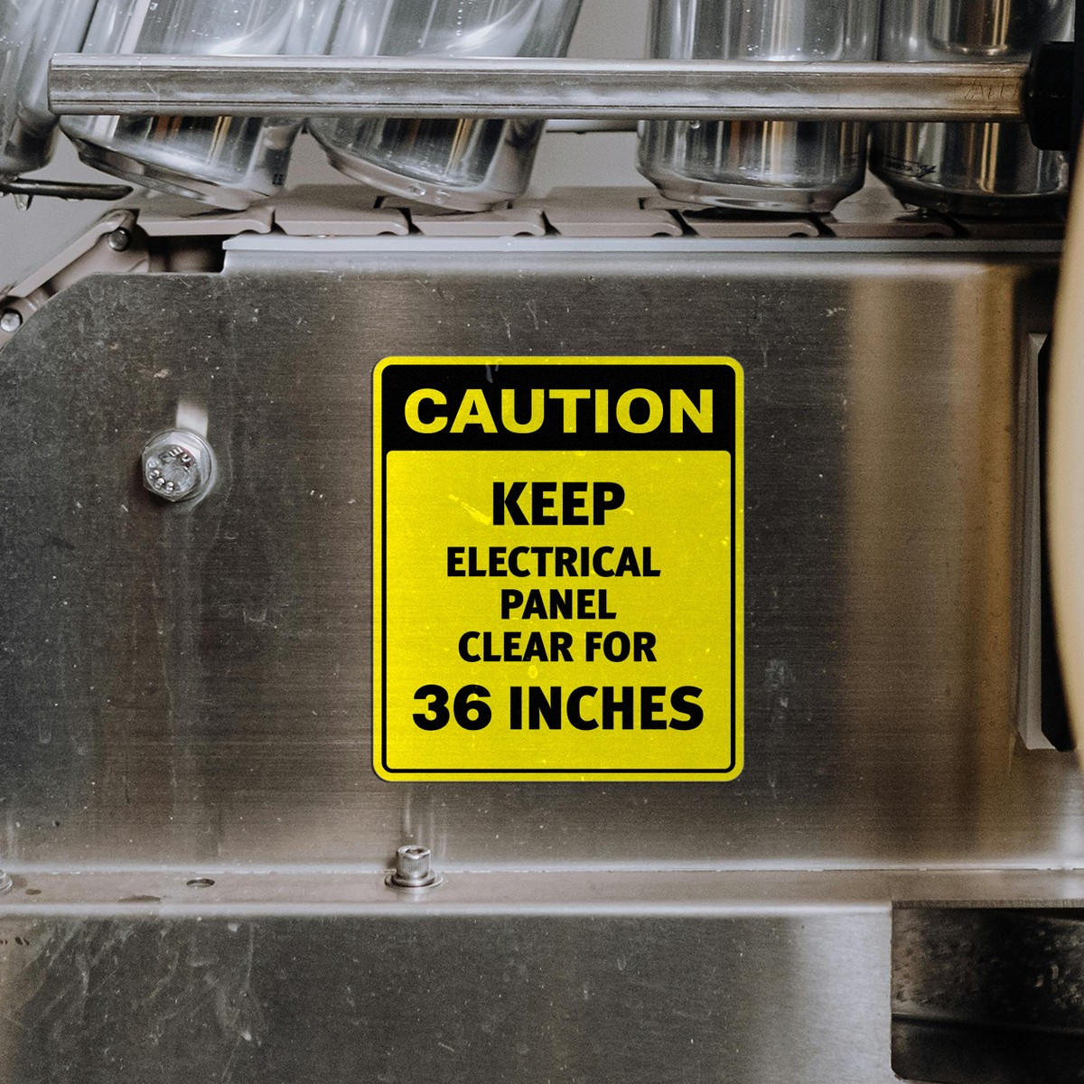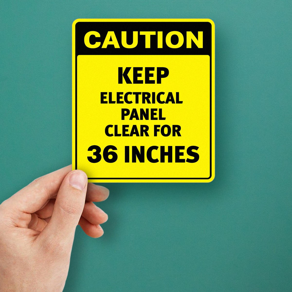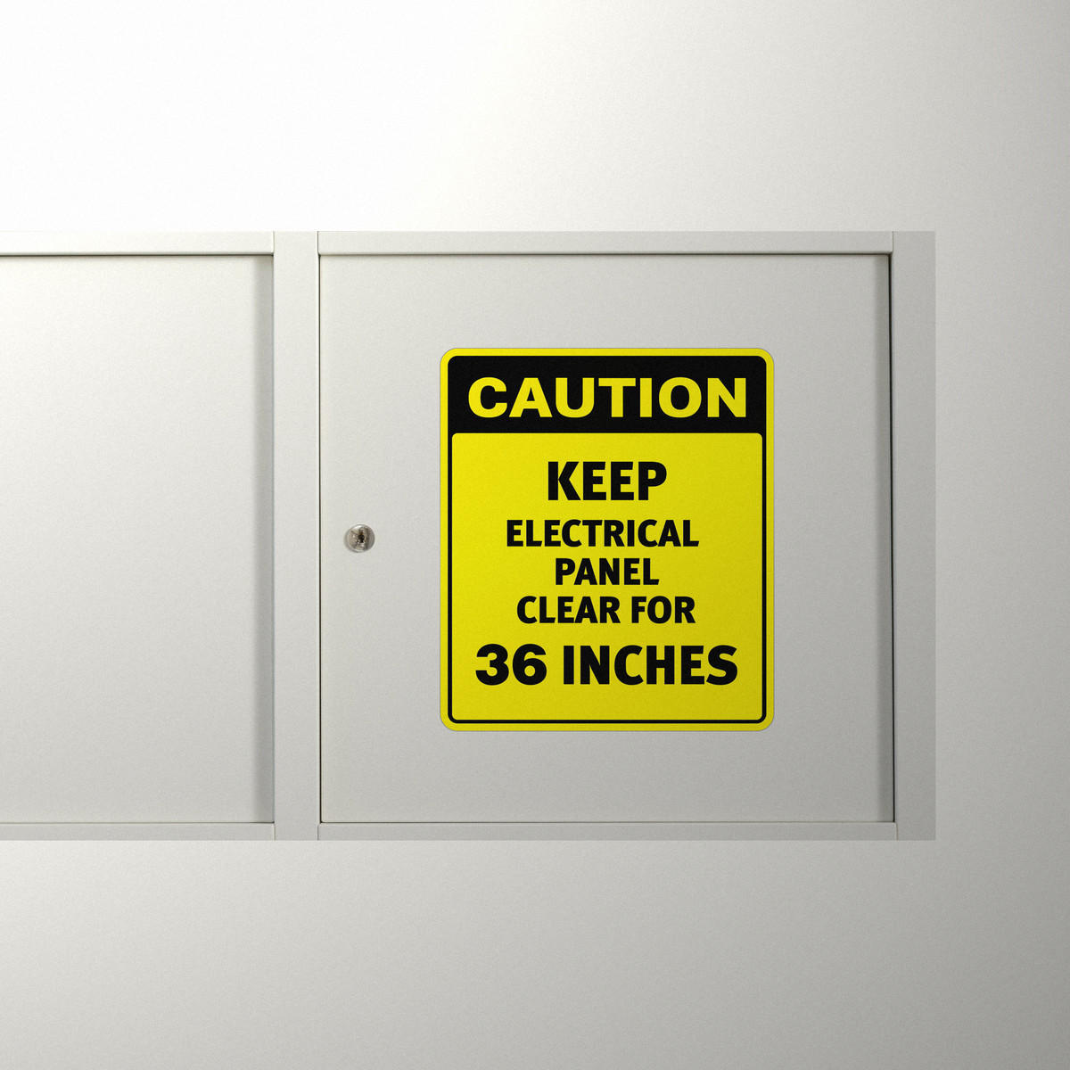 Enhance workplace safety with this high-visibility “Caution: Keep Electrical Panel Clear for 36 Inches” sticker. Perfect for industrial and workplace settings, this durable vinyl decal provides a clear reminder to maintain proper clearance around electrical panels, preventing accidents and ensuring compliance with safety regulations. Its bold yellow and black design ensures maximum visibility in busy environments, while its weatherproof and fade-resistant construction makes it suitable for both indoor and outdoor use. Easy to apply and remove, this sticker offers a simple and effective solution for improving workplace safety. Available in multiple sizes to meet your needs.