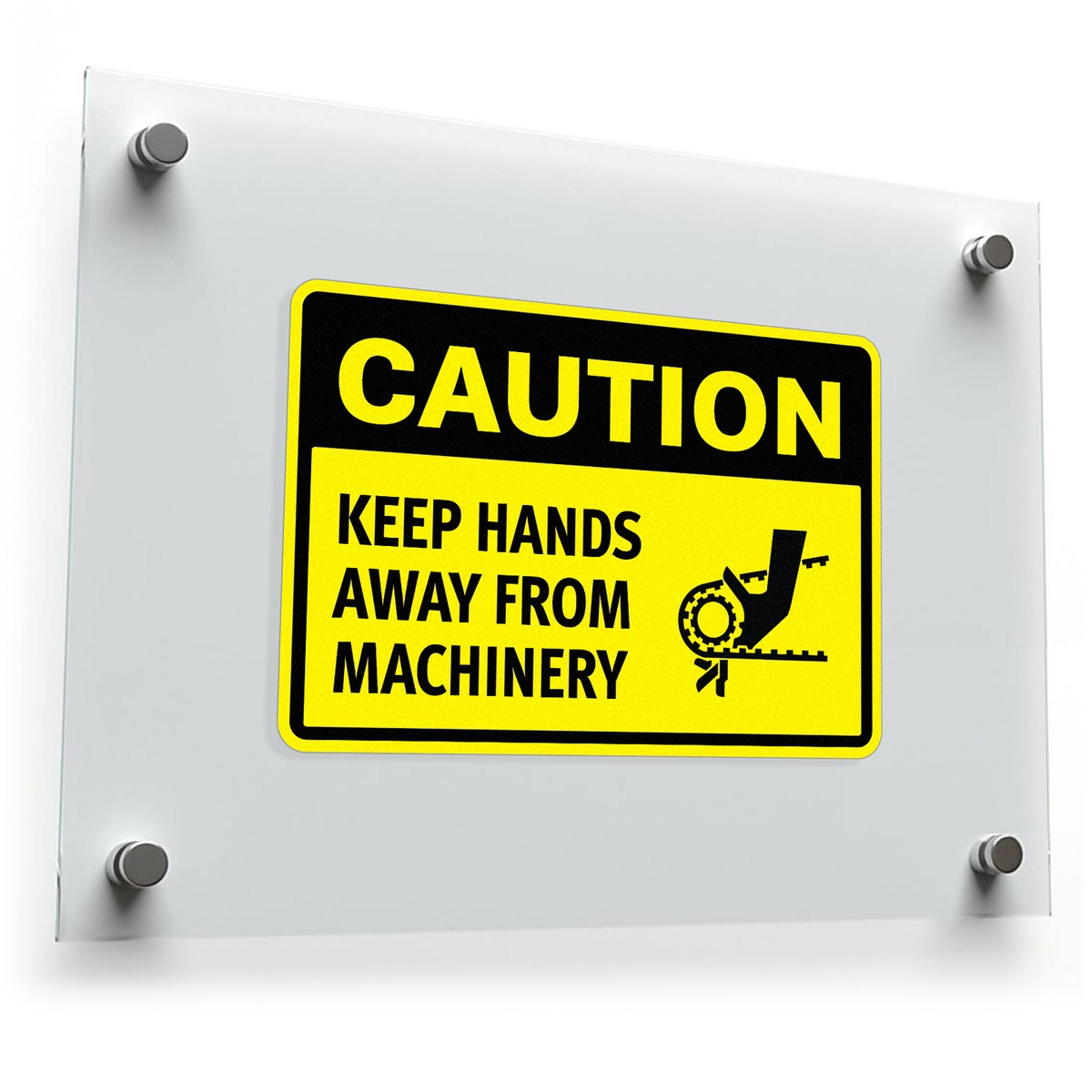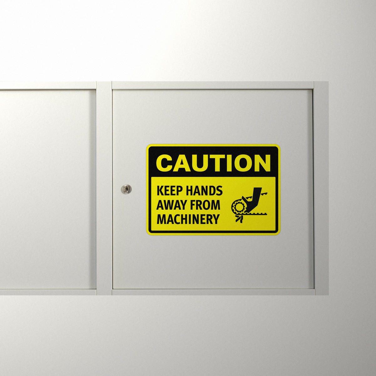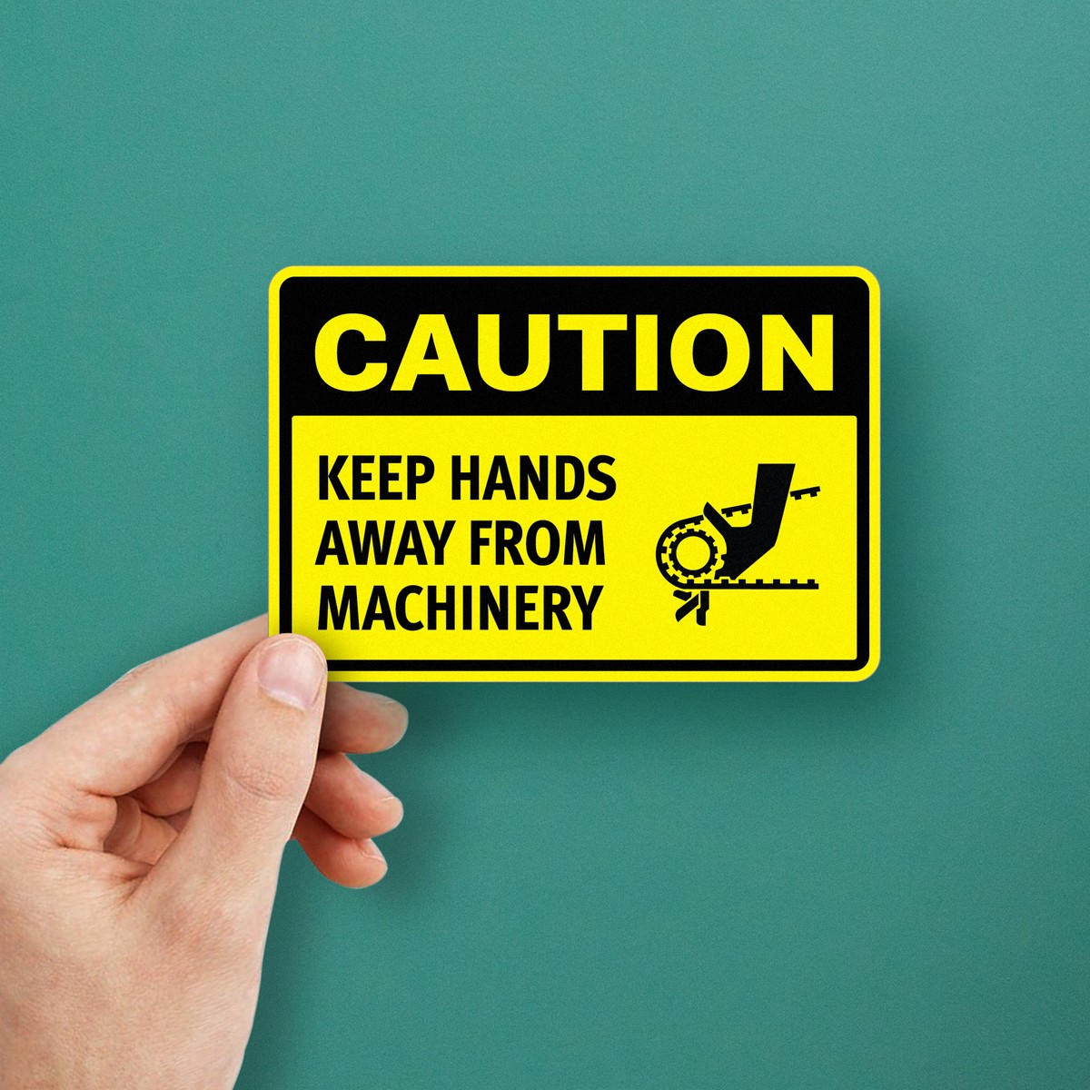 Caution: Keep Hands Away from Machinery ⚠️ Industrial Safety Warning: This “Caution: Keep Hands Away from Machinery” sticker provides a clear and bold warning to prevent accidents in environments with hazardous equipment. ⚠️