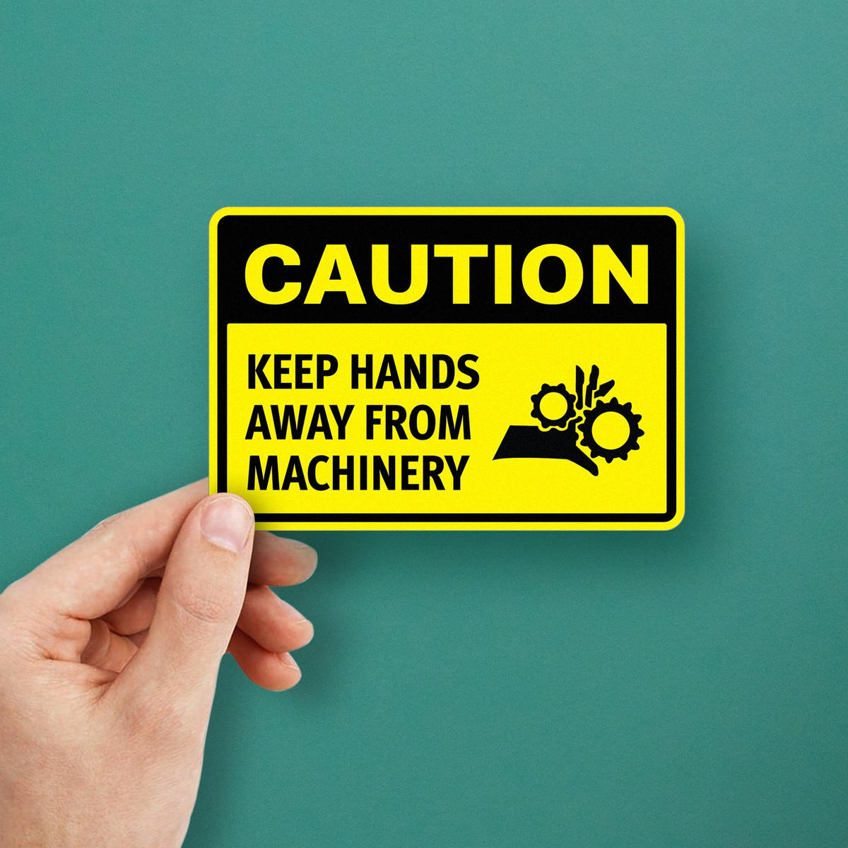 Ensure workplace safety with this ‘Caution: Keep Hands Away from Machinery’ vinyl sticker. Its bold yellow and black design serves as a clear warning in industrial settings, reminding workers to keep their hands away from hazardous machinery. Made from durable, weatherproof vinyl, this safety sticker is built to last, even in extreme conditions like heat, moisture, and exposure to chemicals. Easy to apply and remove, this decal adheres to flat surfaces on machinery and equipment, providing high visibility without leaving residue. Whether used in factories, workshops, or construction sites, this sticker is essential for promoting worker safety.