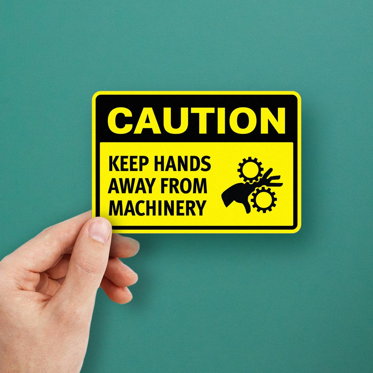 Ensure the safety of your workplace with this durable “Caution: Keep Hands Away from Machinery” vinyl sticker. Perfect for industrial environments, this bold safety sign helps prevent accidents by clearly reminding workers to stay cautious around machinery. Crafted from premium vinyl, it is weatherproof and UV-resistant, making it suitable for both indoor and outdoor use. Its easy peel-and-stick application allows you to place it on various surfaces, including metal and glass. This caution sticker is a must-have for factories, workshops, and warehouses to enhance safety protocols and avoid machinery-related injuries.