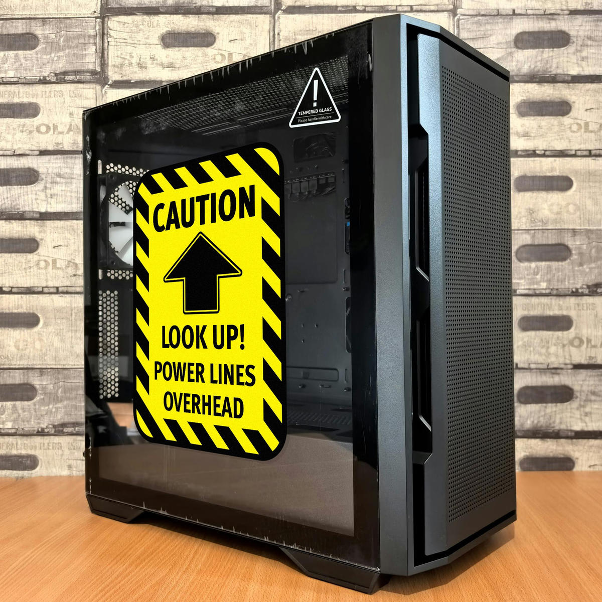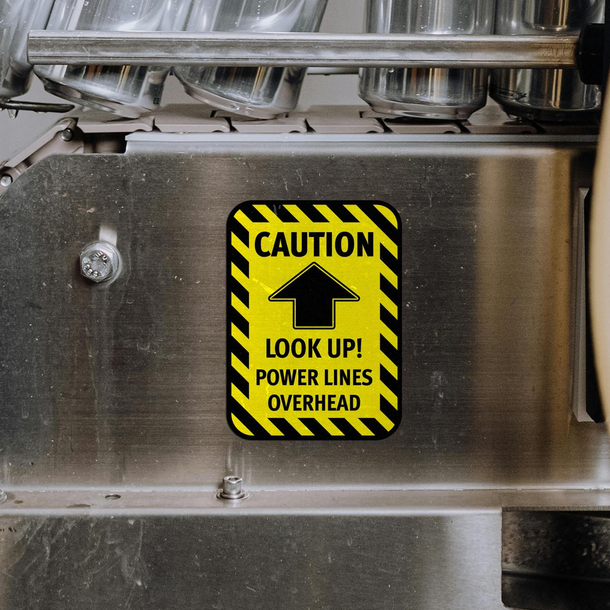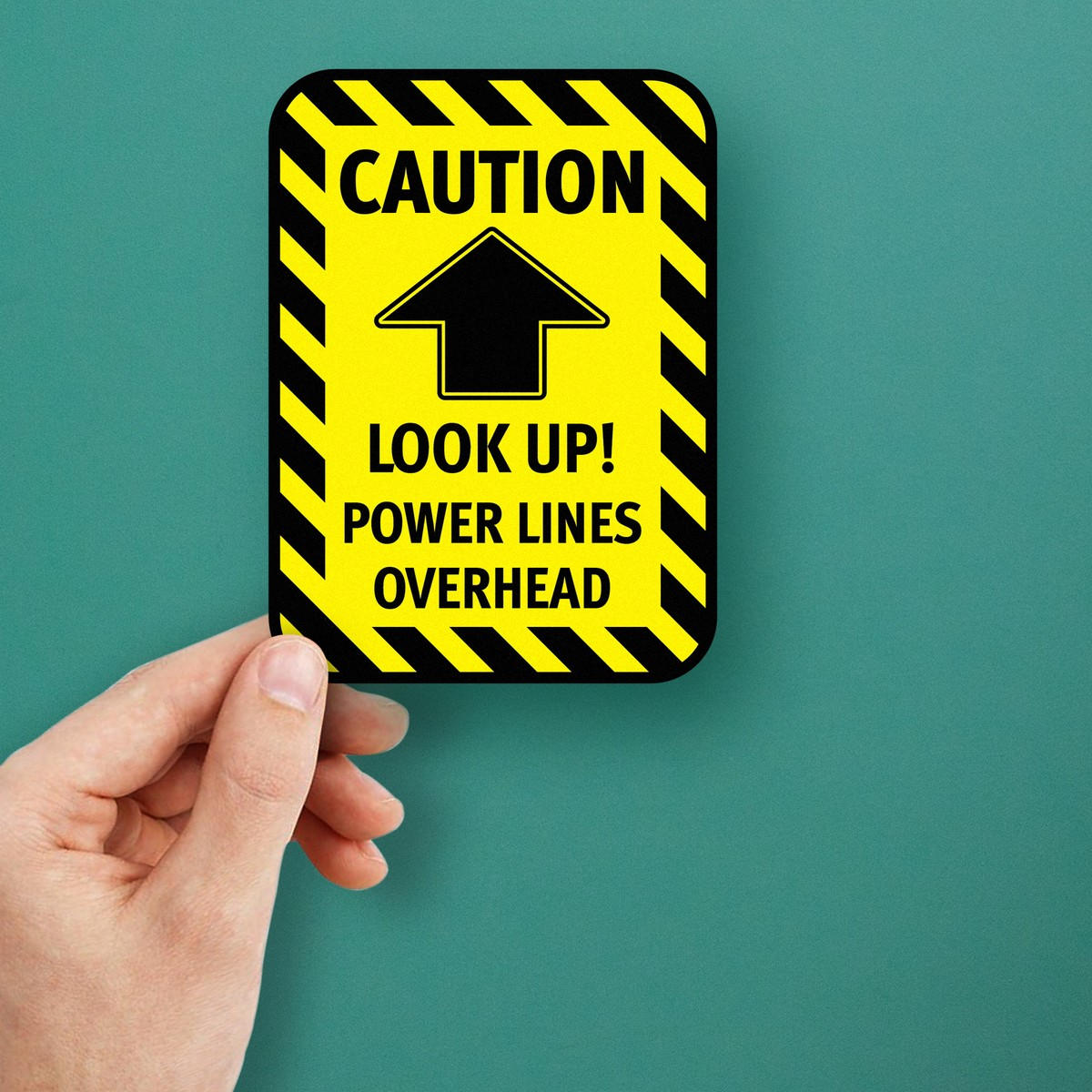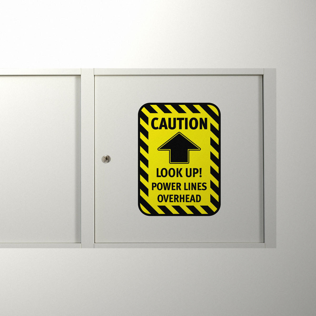 “Caution: Look Up! Power Lines Overhead” Safety Sign Vinyl Sticker