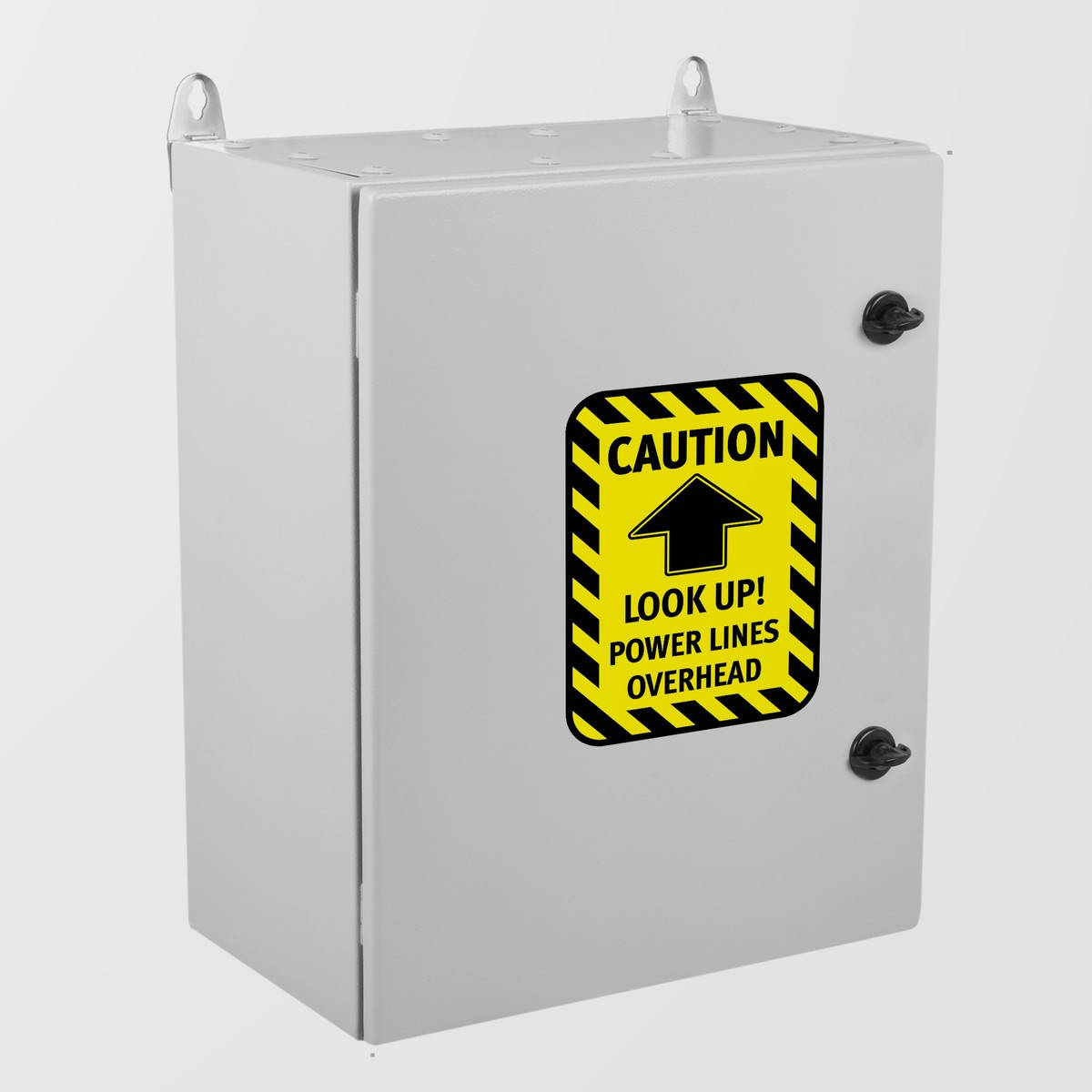 “Caution: Look Up! Power Lines Overhead” Safety Sign Vinyl Sticker ⚠️ Power Line Safety Warning: This “Caution: Look Up! Power Lines Overhead” sticker provides a clear, high-visibility warning to ensure awareness of overhead power lines in construction and industrial environments. ⚠️