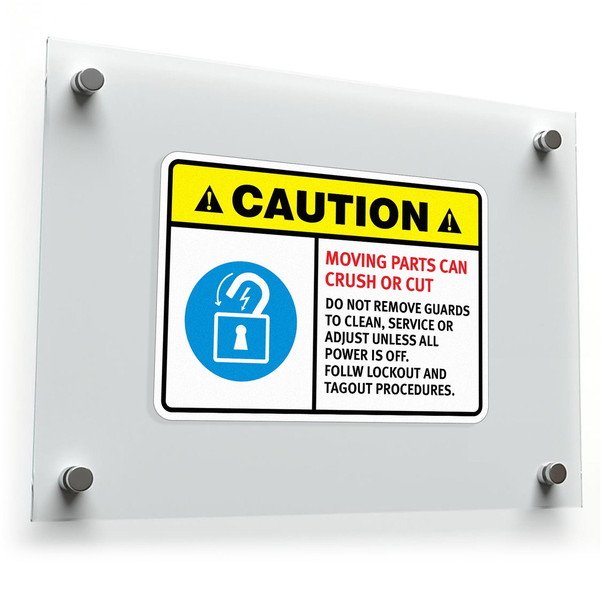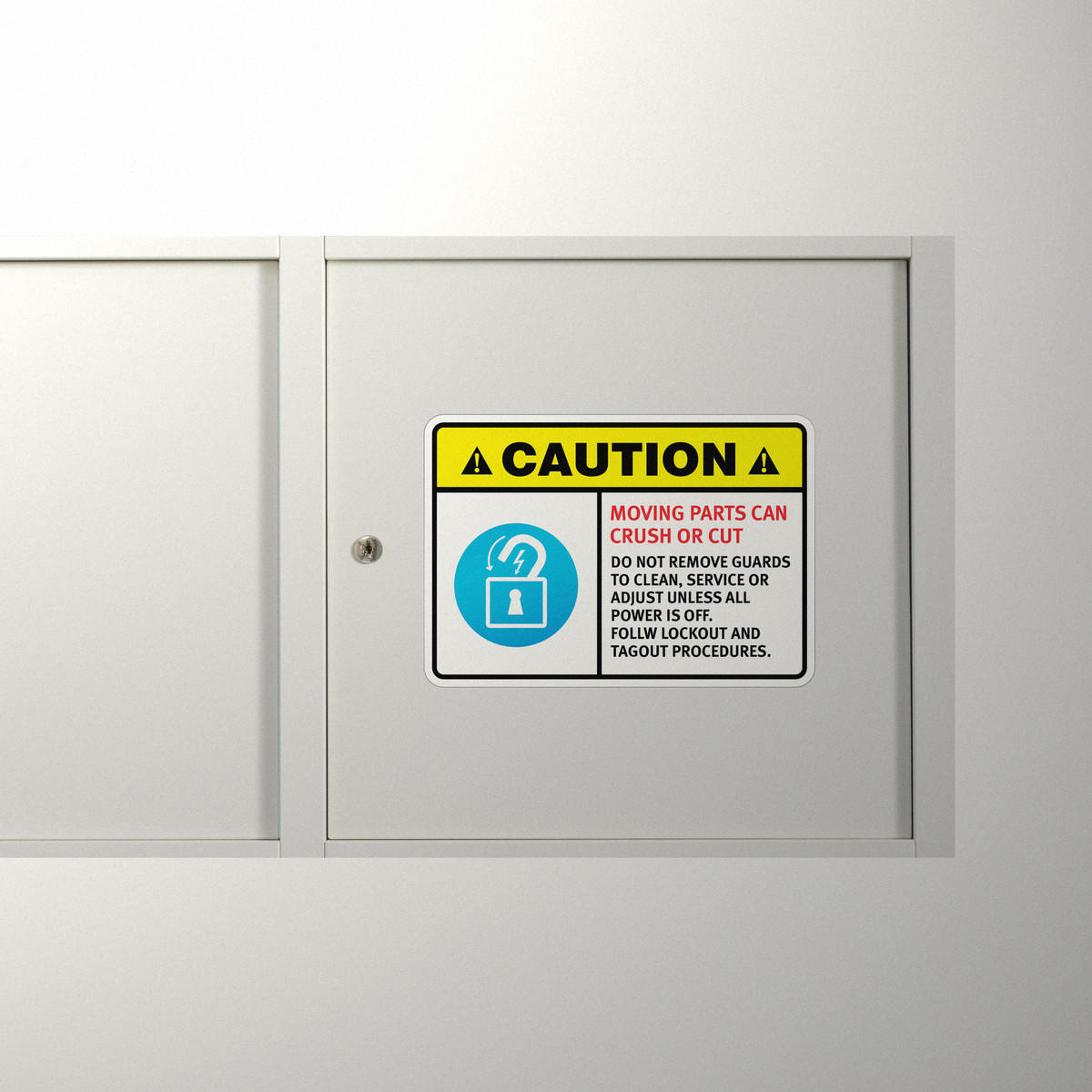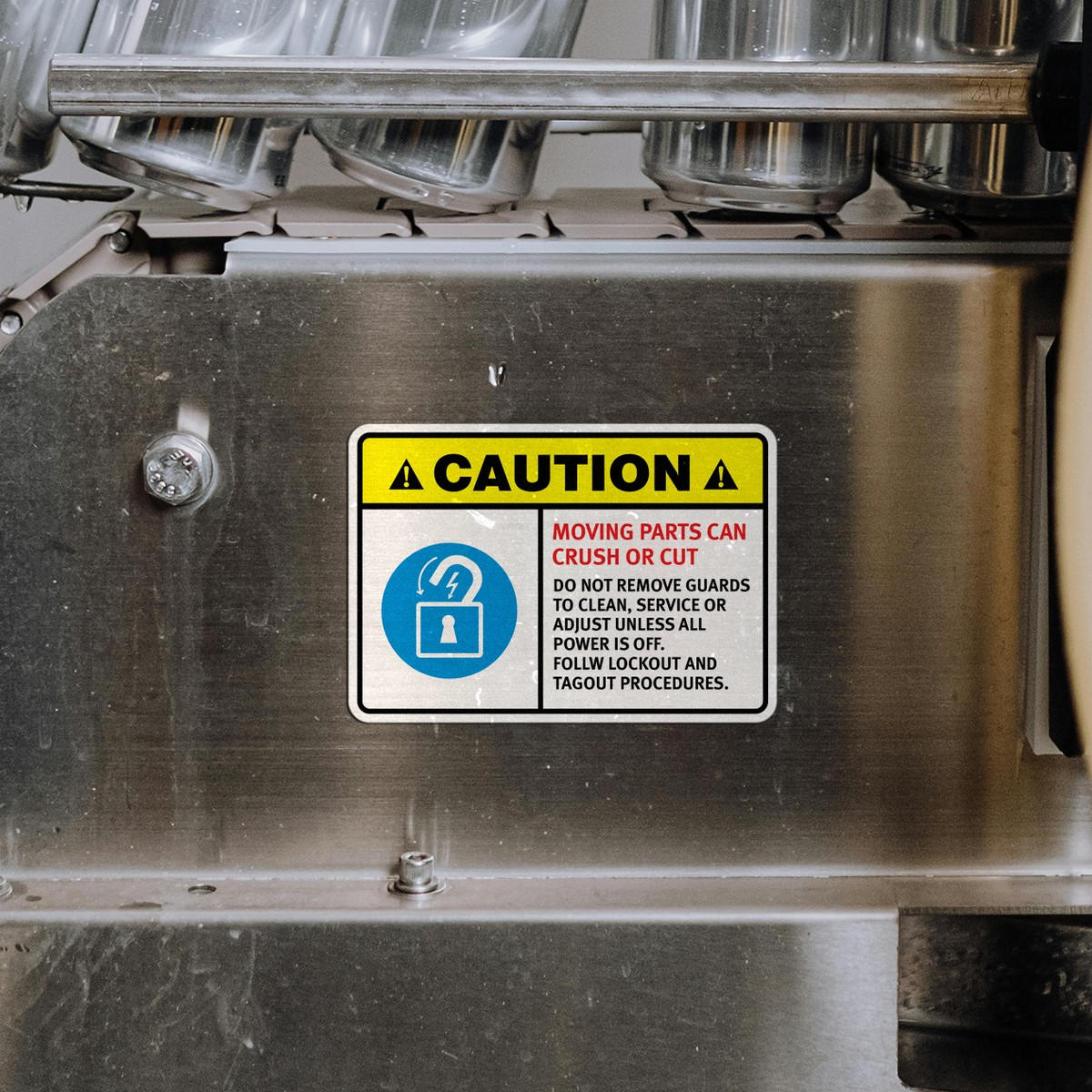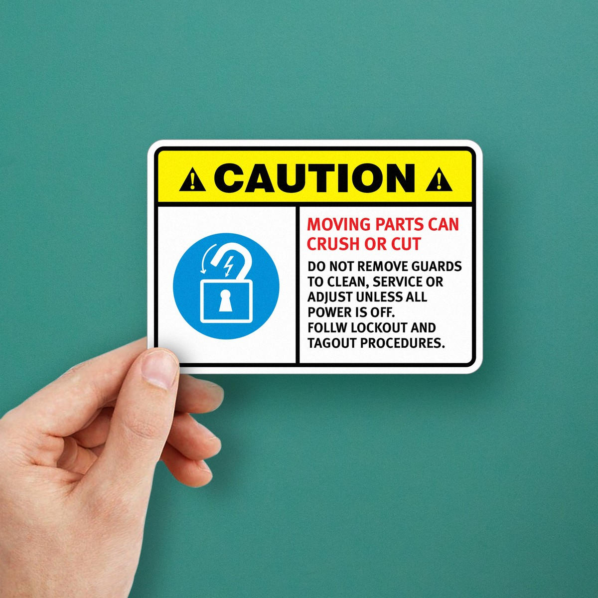Promote safety and compliance in your workplace with this durable vinyl “Caution: Moving Parts Can Crush or Cut” safety sticker. Designed for use on industrial equipment, this weatherproof and UV-resistant decal provides a clear warning to workers, helping prevent serious injuries. Easy to apply and remove, it’s ideal for factory walls, machinery, and safety equipment. This long-lasting sticker ensures that safety protocols, including lockout and tagout procedures, are clearly communicated. Available in multiple sizes, this decal is essential for maintaining a safe and compliant workplace.
