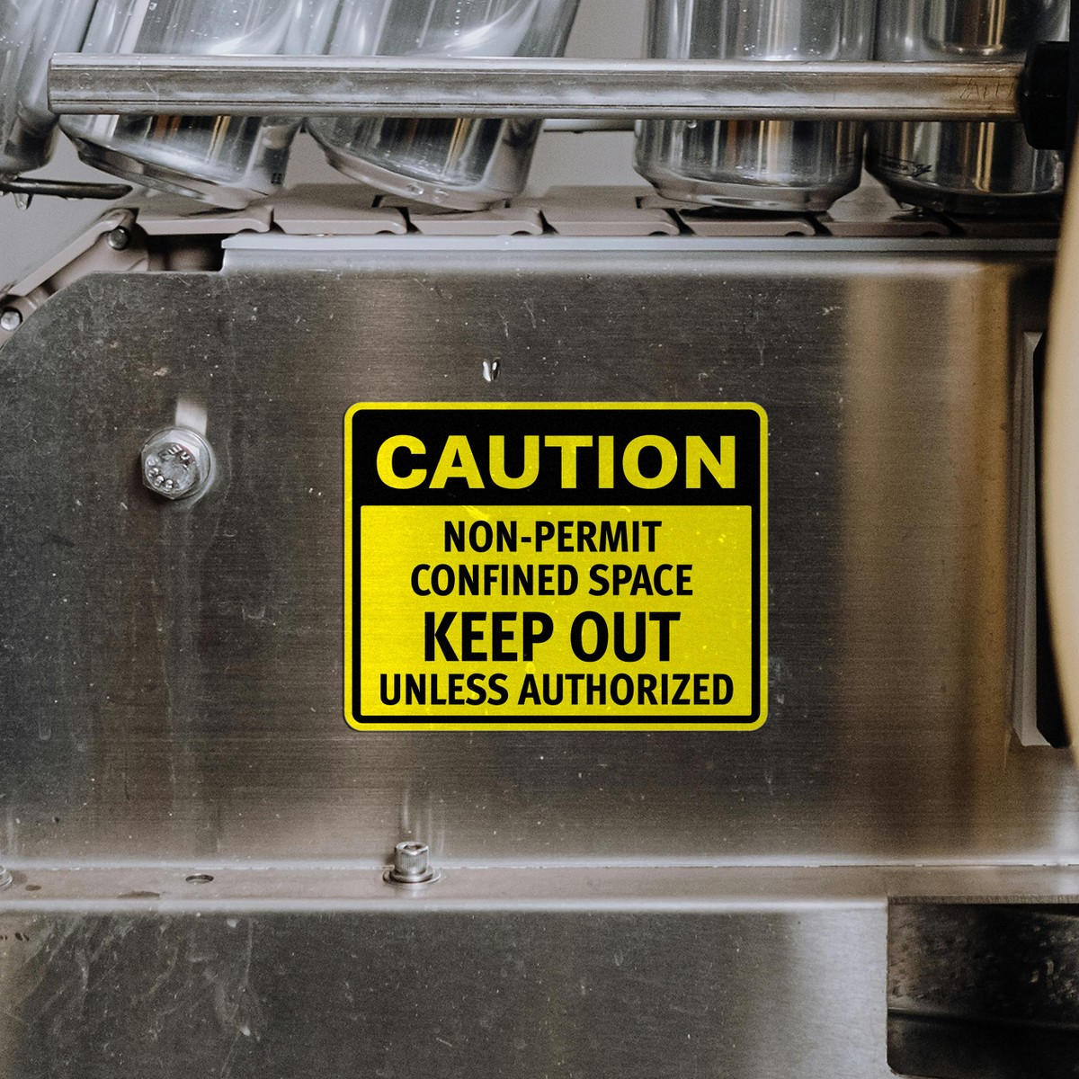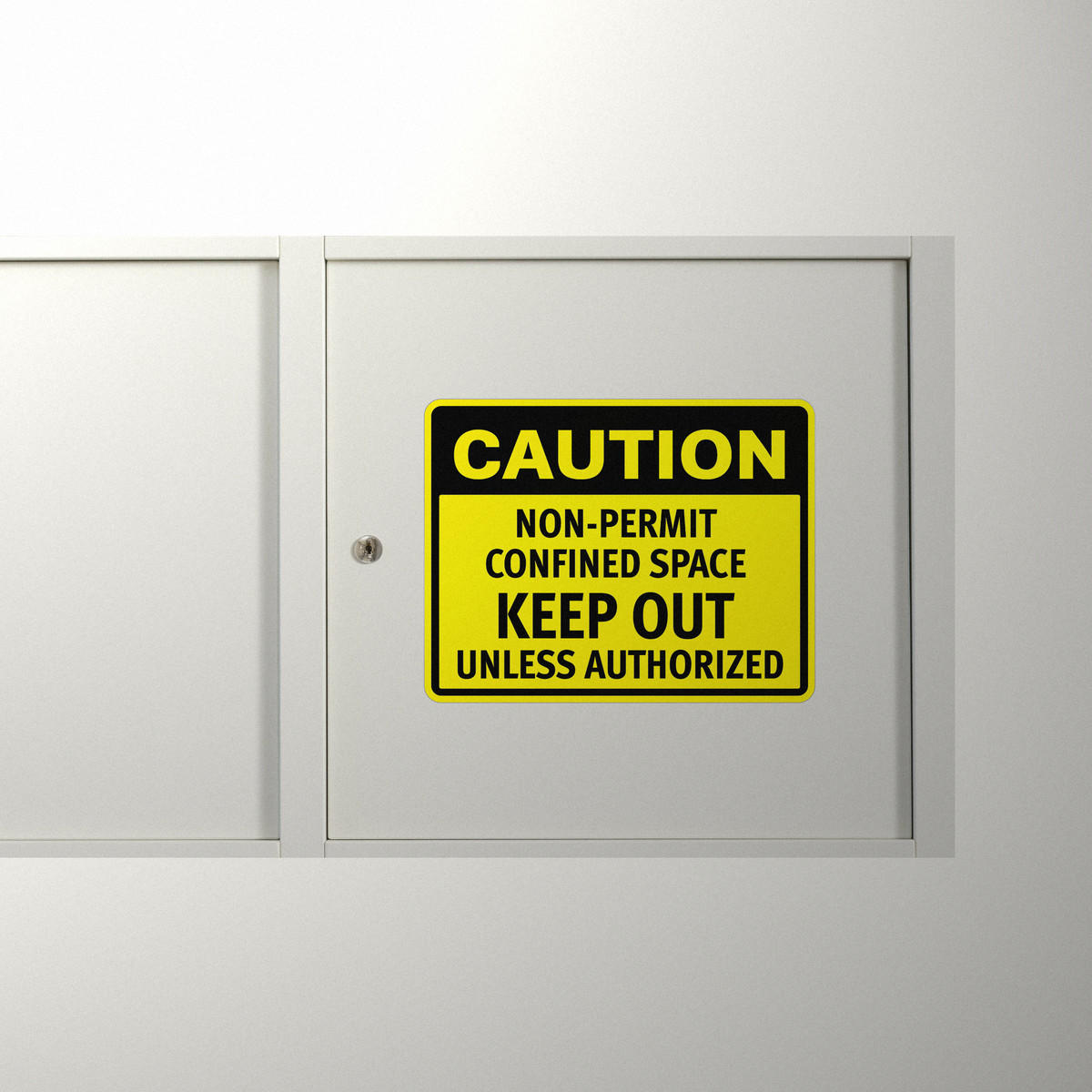 Ensure workplace safety with this high-visibility caution sticker designed to mark non-permit confined spaces. Made from durable, weather-resistant vinyl, this safety decal provides a bold warning to keep unauthorized personnel out of hazardous areas. Its easy-to-apply and removable design allows for flexible placement without leaving behind residue. Ideal for industrial environments, construction sites, and factories, this sticker is a must-have for promoting safety and compliance. Available in multiple sizes, it combines effective communication with eco-friendly production methods.