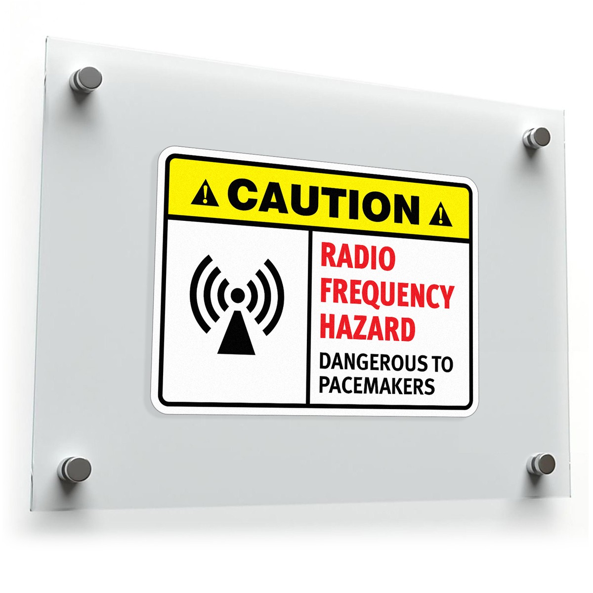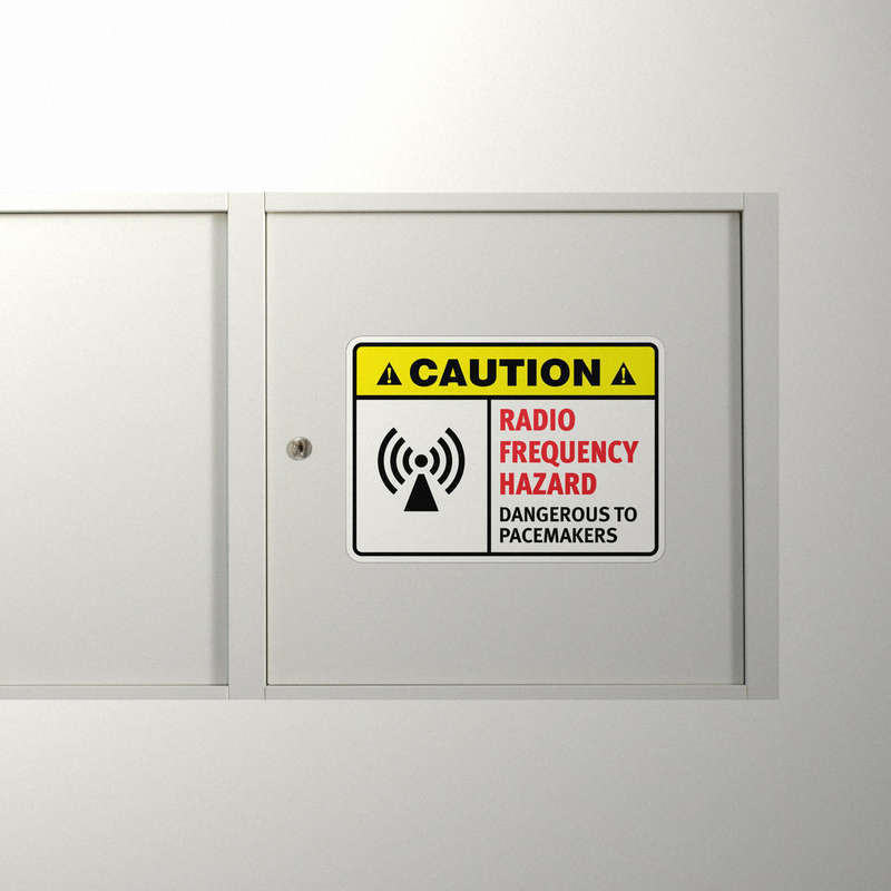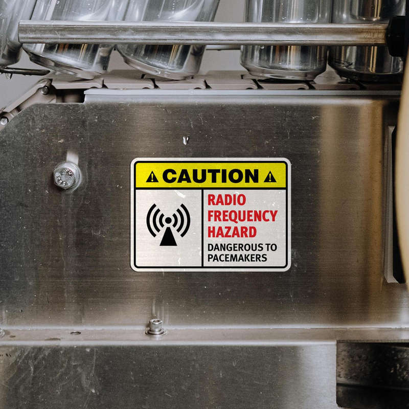 Enhance safety in industrial settings with this “Caution: Radio Frequency Hazard – Dangerous to Pacemakers” safety sticker. Featuring a high-contrast yellow, red, and black design with a clear RF hazard icon, this decal is ideal for alerting workers and visitors to potential dangers. Constructed from durable vinyl, it resists fading, peeling, and wear, maintaining its effectiveness in tough environments. With a strong adhesive backing, it adheres firmly to various surfaces, ensuring reliable placement. Available in multiple sizes, this sticker is perfect for marking hazardous areas on equipment or in workspaces, keeping everyone informed and safe.