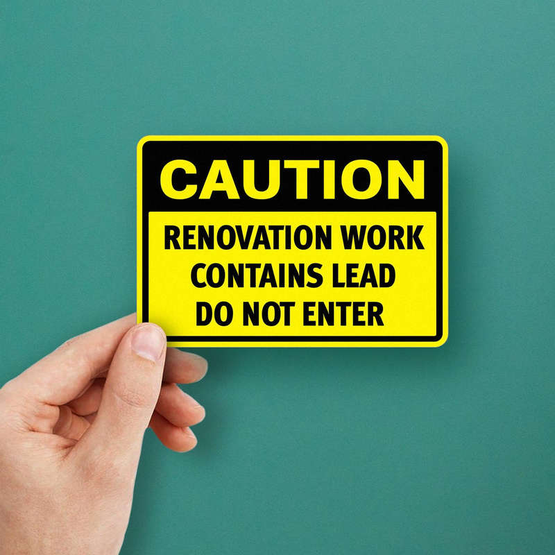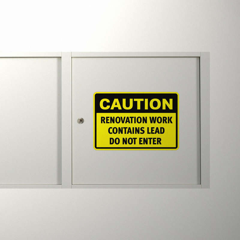 Ensure safety and prevent accidental exposure with this “Caution Renovation Work Contains Lead” sticker, designed to warn of hazardous materials in renovation zones. The bold yellow and black design captures attention, communicating the need for restricted access and safety precautions. Constructed from durable vinyl, this decal is built for the challenging conditions of construction sites, remaining clear and legible over time. Available in multiple size options, it easily adheres to doors, walls, and barriers, supporting compliance with safety protocols and helping to protect personnel and visitors from potential lead exposure.