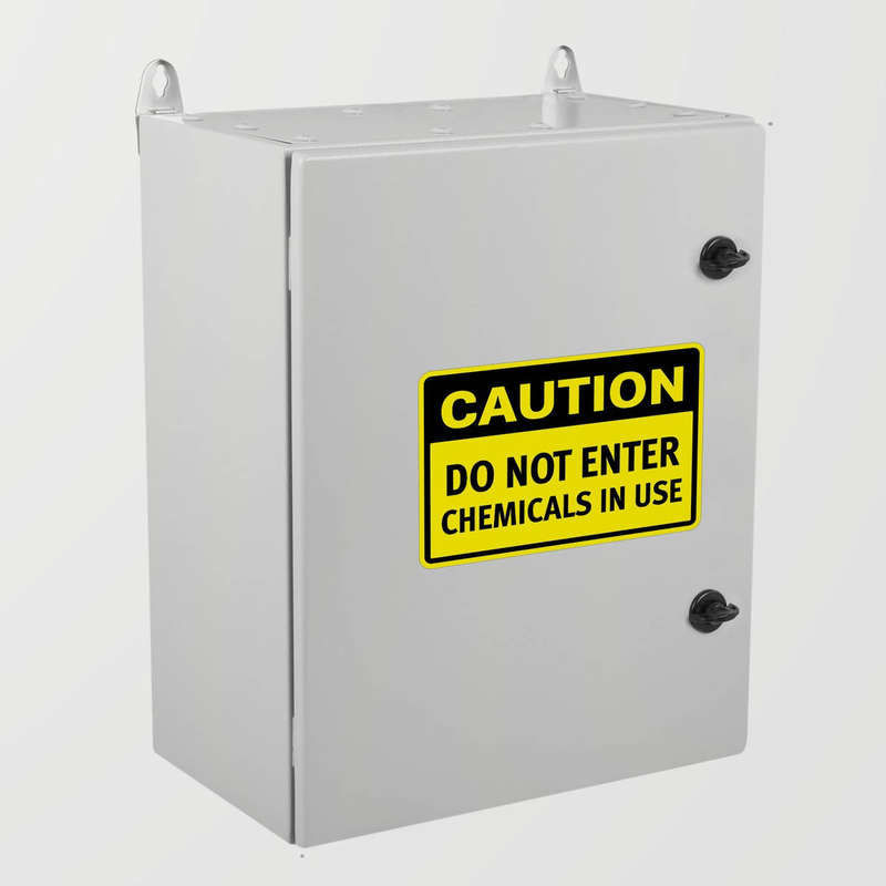 Enhance workplace safety with this “Do Not Enter, Chemicals in Use” caution sticker. Featuring a bold black and yellow design, this highly visible decal ensures critical hazard communication in laboratories, factories, and chemical storage areas. Made from durable waterproof vinyl, it resists fading and wear, making it suitable for both indoor and outdoor use. Easy to apply and securely adhesive, this caution sign is a practical and effective tool for creating safer work environments. Available in multiple size options, it’s an essential addition to any safety protocol.