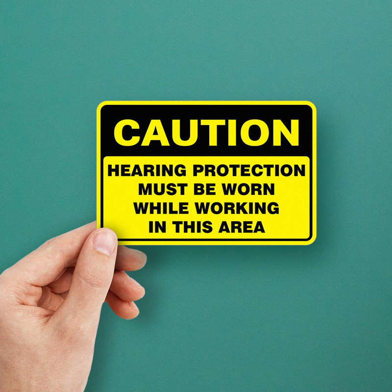 Caution Sign Sticker ⚠️ Clear Safety Reminder: Featuring the message “Hearing Protection Must Be Worn While Working in This Area,” this sticker ensures compliance with workplace safety protocols. ⚠️