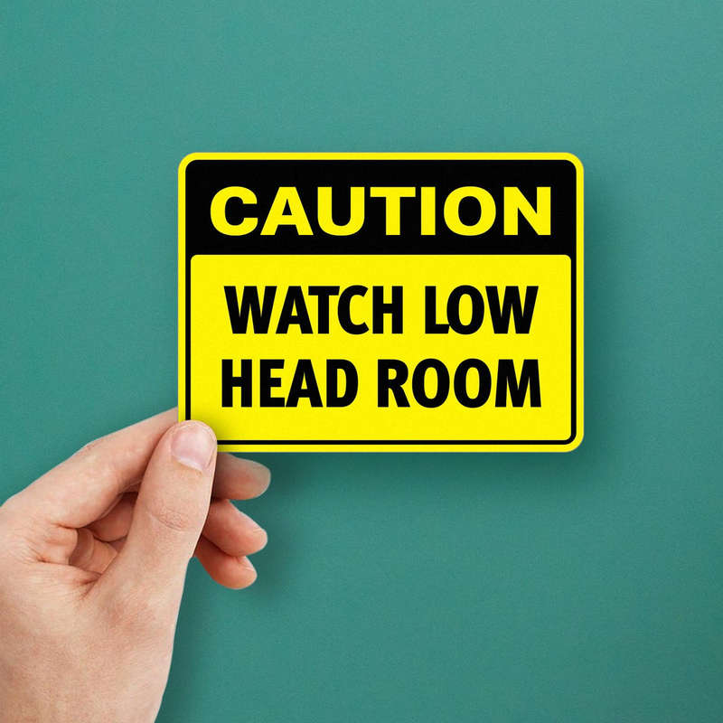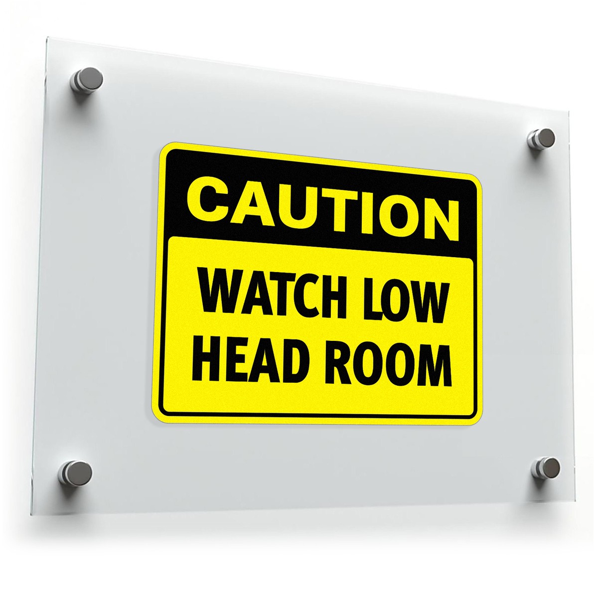Caution Sign Sticker ⚠️ Clear Safety Message: Remind everyone to stay alert with this “Watch Low Head Room” caution sign sticker, featuring bold black text on a vibrant yellow background for maximum visibility. ⚠️