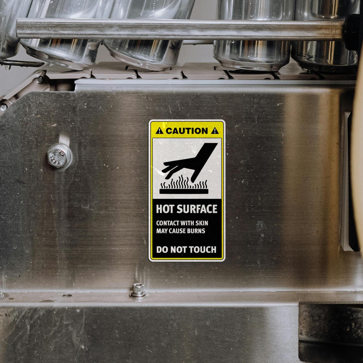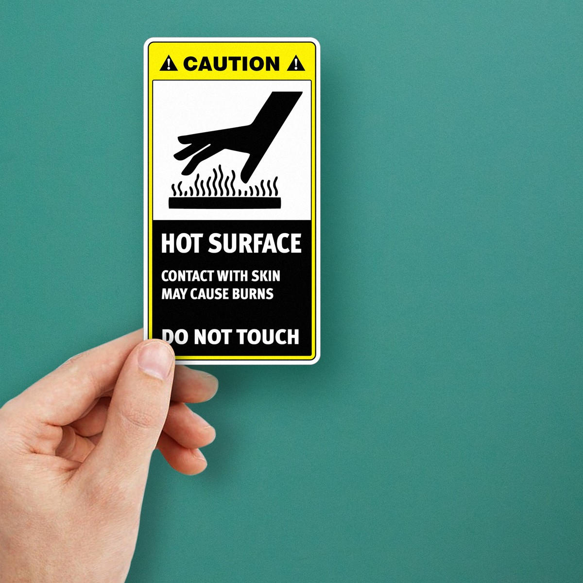 Caution Sign Sticker ⚠️ Clear Hazard Warning: Prevent accidents with this bold “Hot Surface Do Not Touch” sign, clearly warning of the danger of contact with hot surfaces in industrial or workplace settings. ⚠️