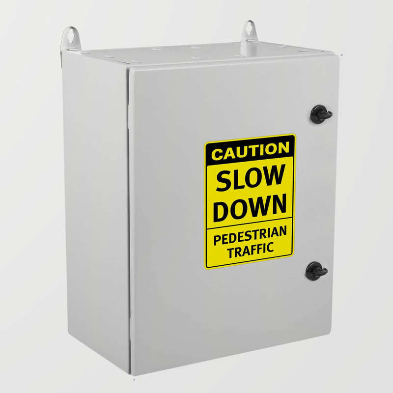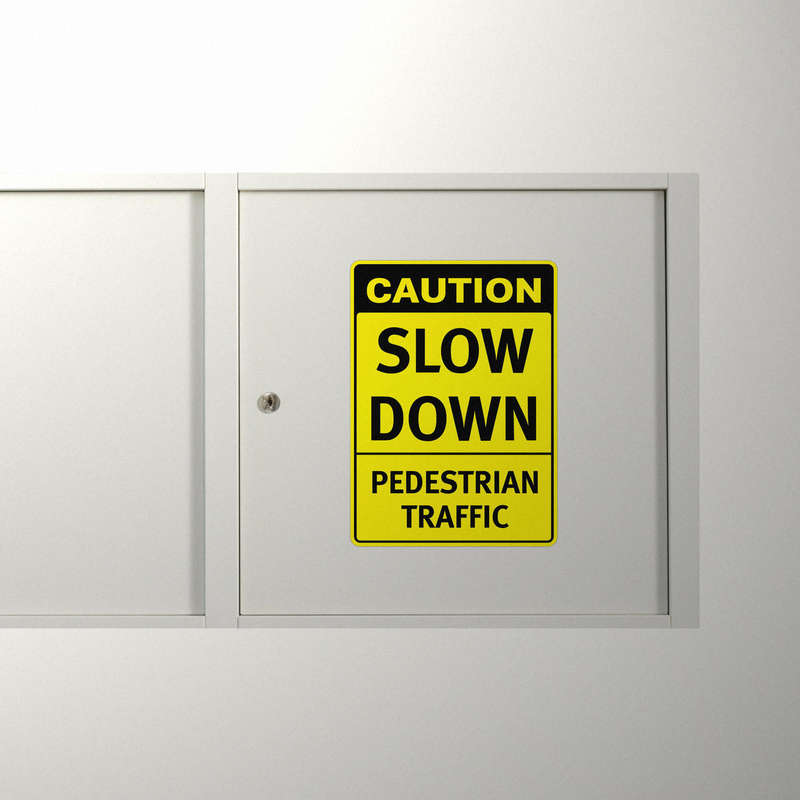 Promote pedestrian safety with this “Caution Slow Down Pedestrian Traffic” sticker, a high-visibility decal designed to remind drivers to reduce speed in areas with foot traffic. Featuring a bold yellow background and clear black text, this sticker stands out, ensuring attention in parking lots, school zones, and other pedestrian-heavy areas. Made from durable vinyl, it withstands the elements, providing a long-lasting safety solution. The easy peel-and-stick application allows for secure placement on walls, posts, or other surfaces, making it a versatile addition to any traffic control plan. Available in multiple sizes to meet your specific needs.