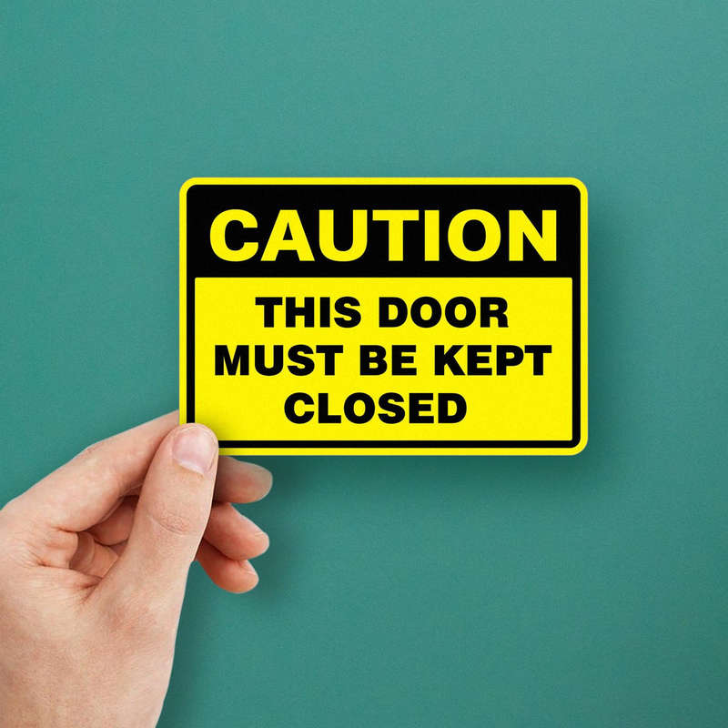 Maintain safety and compliance in your workplace with this “Caution: This Door Must Be Kept Closed” safety sign. Featuring a high-visibility yellow and black design, this durable vinyl sticker is perfect for industrial and commercial settings, ensuring critical safety reminders are easily seen. With a simple peel-and-stick application, it’s easy to install on doors, walls, or any flat surface, making it ideal for warehouses, factories, or any facility requiring controlled access. Built to last, this decal withstands high-traffic areas and provides clear, bold warnings that help maintain a secure and compliant environment.