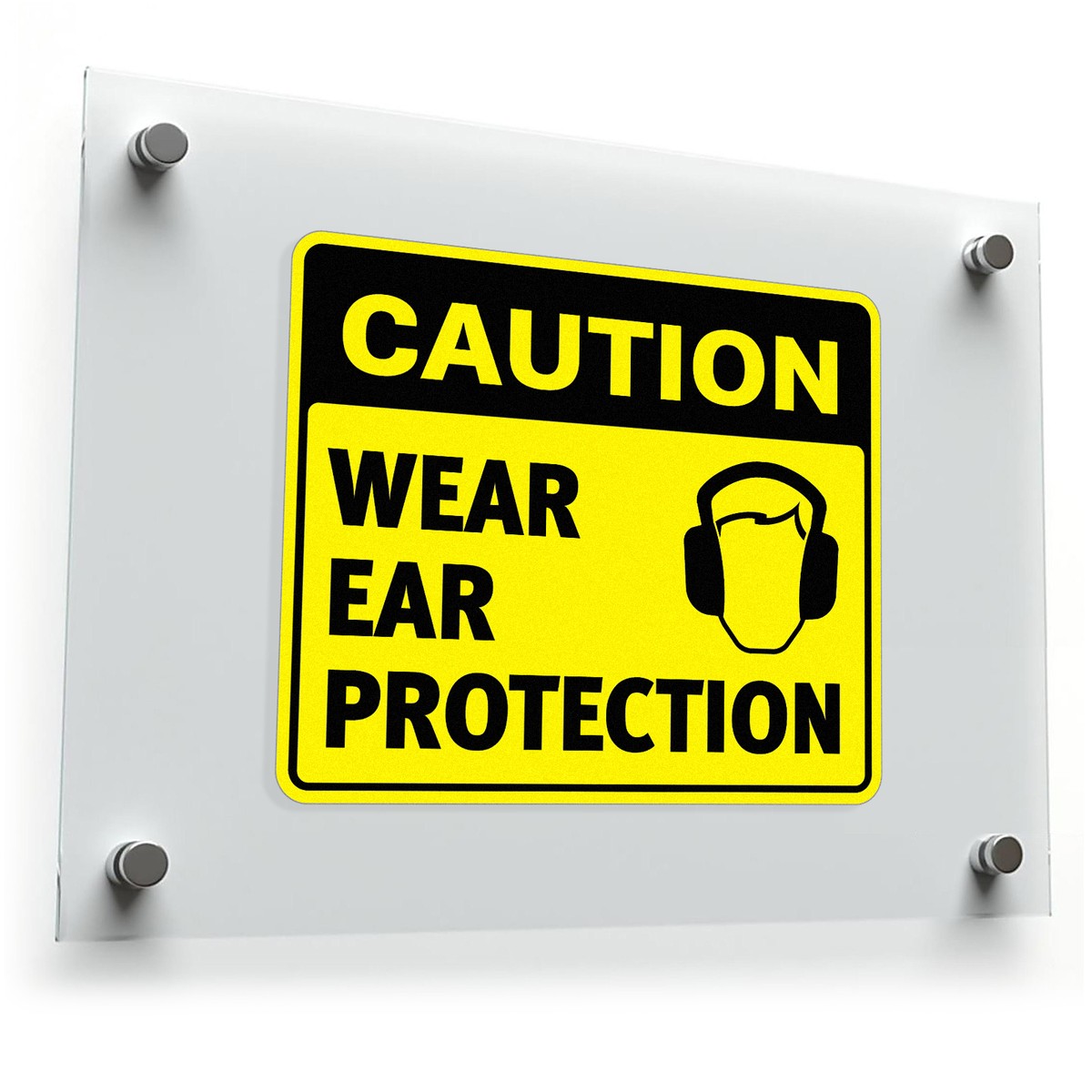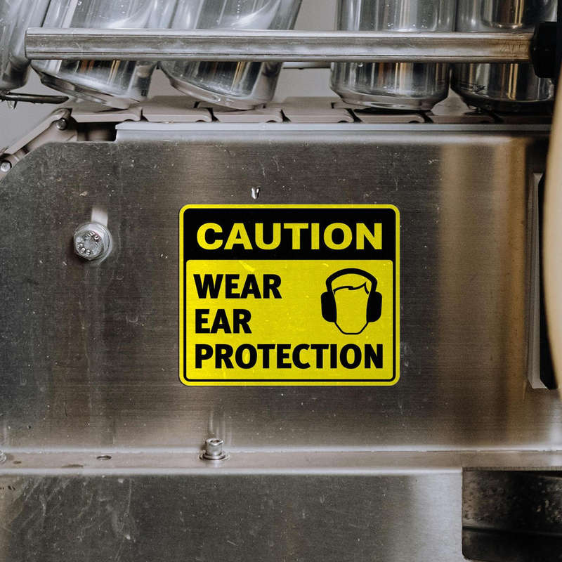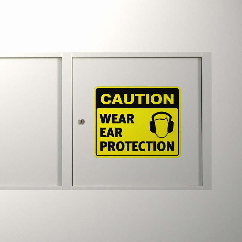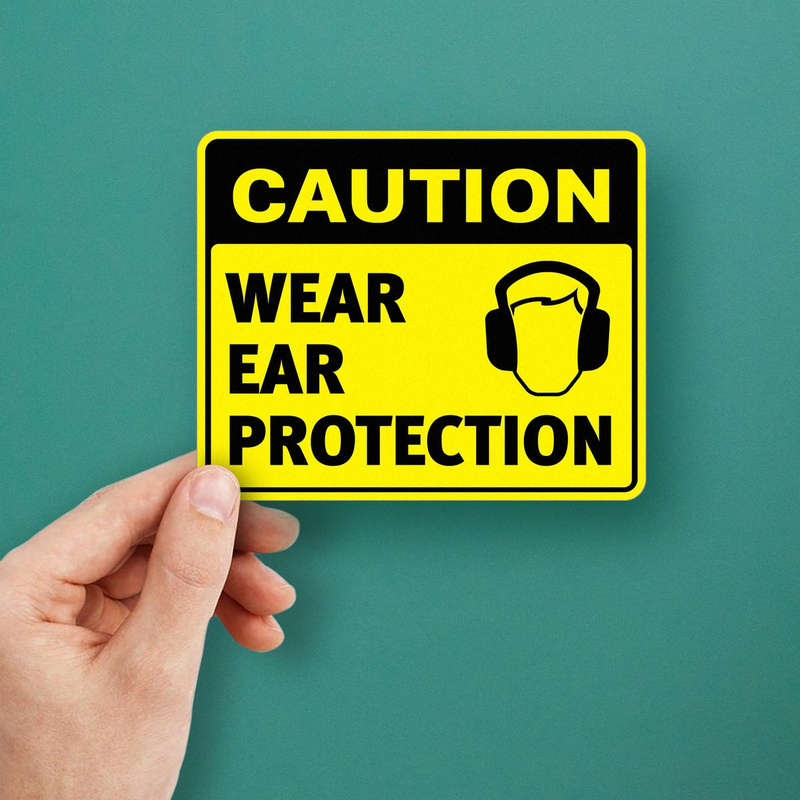 Caution Wear Ear Protection Sign Sticker – Durable Vinyl
