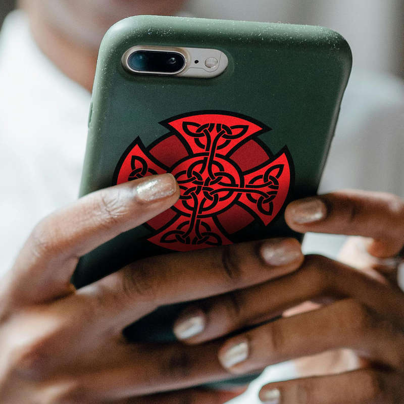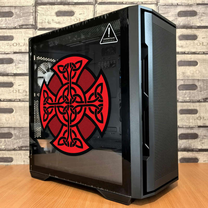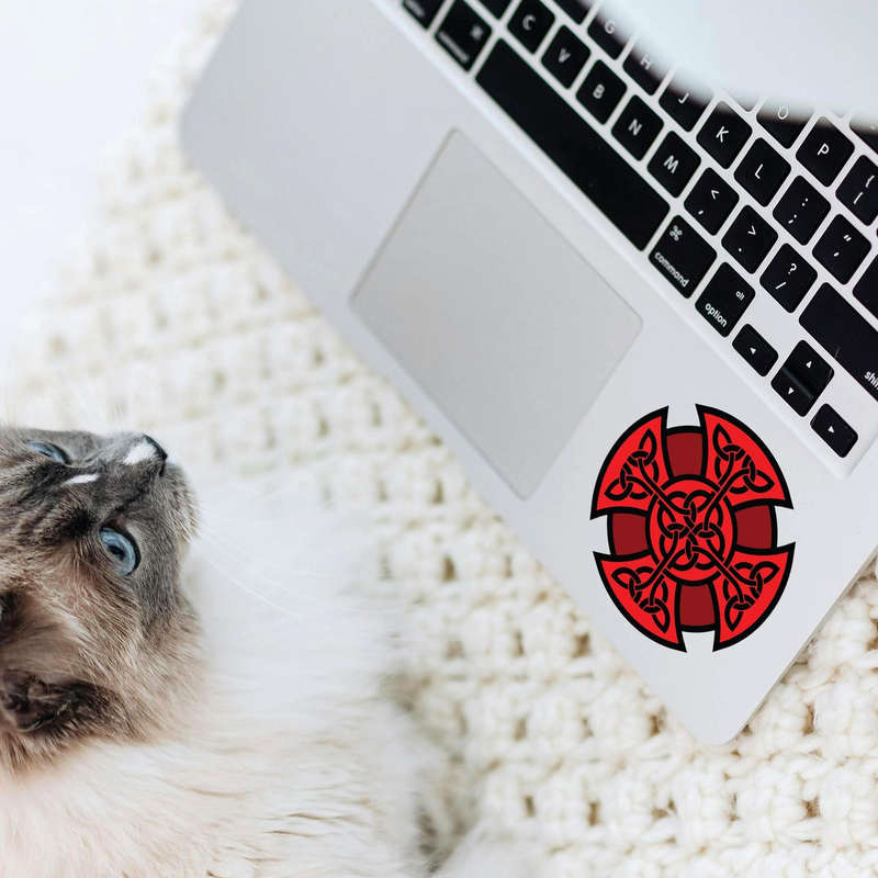 Celtic Cross Vinyl Sticker ⛓️ Intricate Celtic Design: This striking Celtic cross decal features detailed knotwork in bold red and black, blending timeless symbolism with modern style. ⛓️