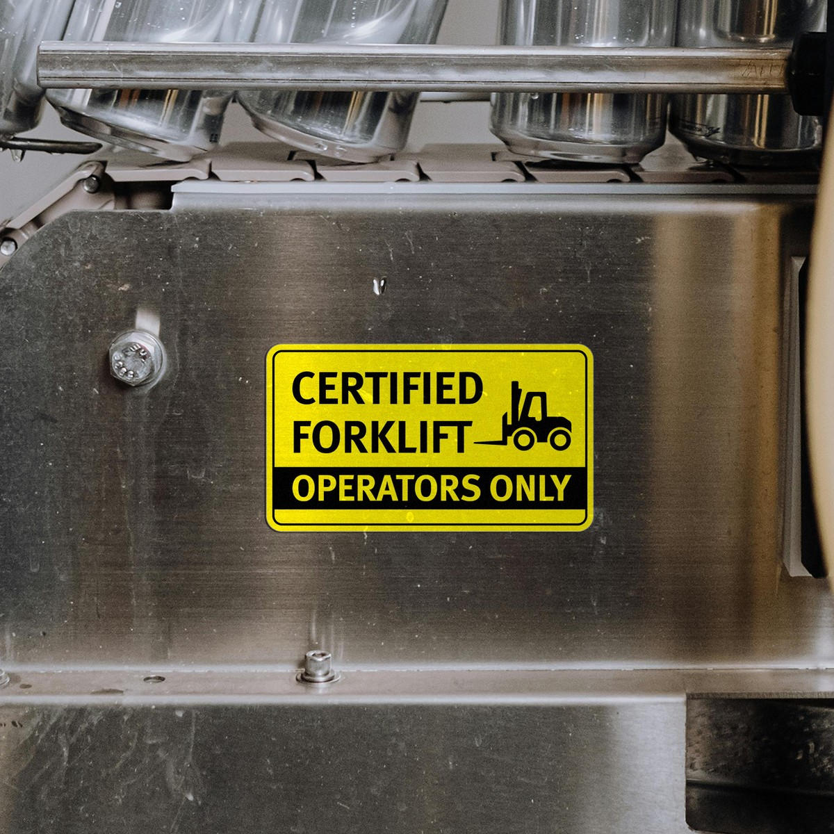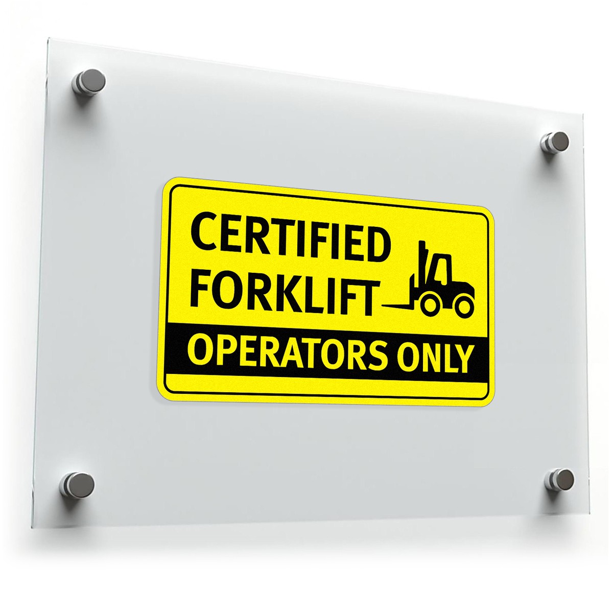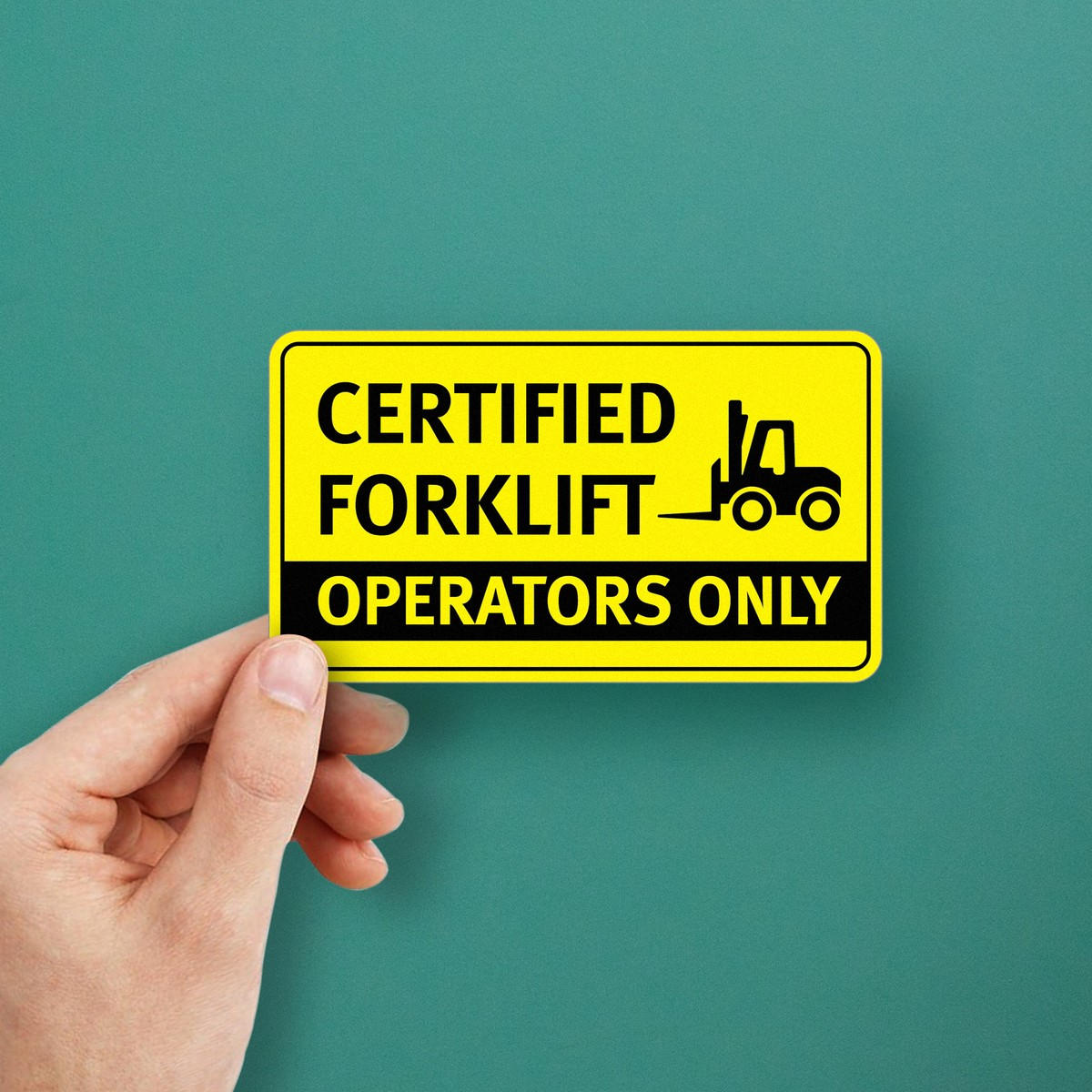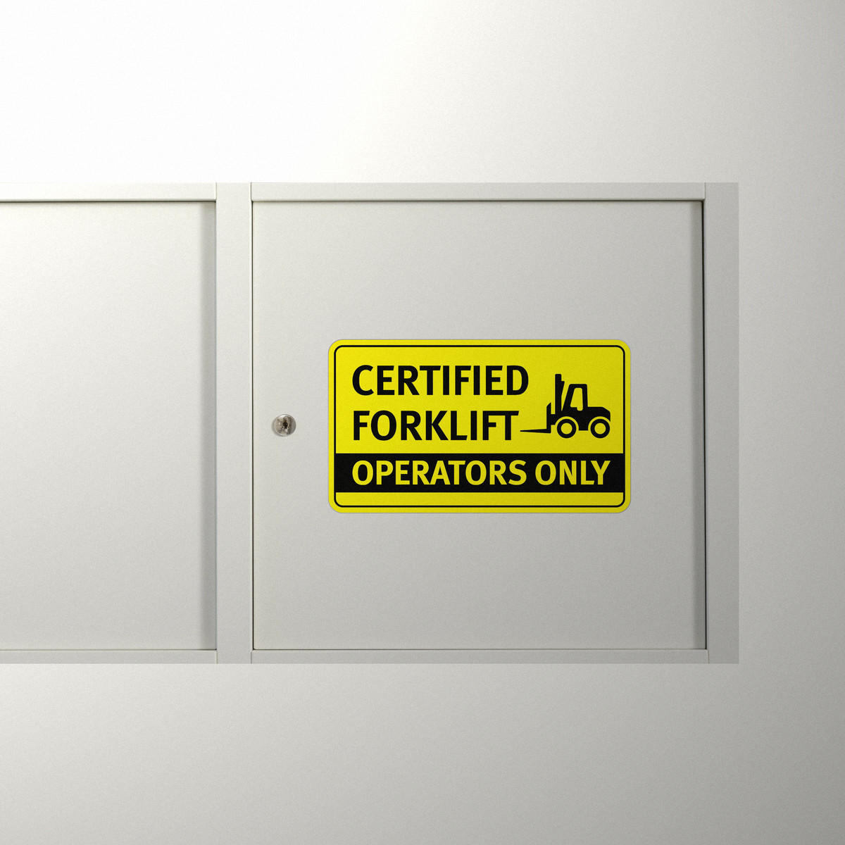 Enhance safety in your warehouse or industrial space with this “Certified Forklift Operators Only” sign. Made from durable vinyl, this safety decal is designed to withstand harsh conditions and ensure long-lasting visibility both indoors and outdoors. Its bold yellow and black design clearly communicates safety guidelines, helping to enforce strict forklift operator regulations. Easy to apply and remove, this OSHA-compliant sign is essential for maintaining safety and compliance in warehouses, factories, and other industrial areas. Available in multiple sizes to suit your specific needs.