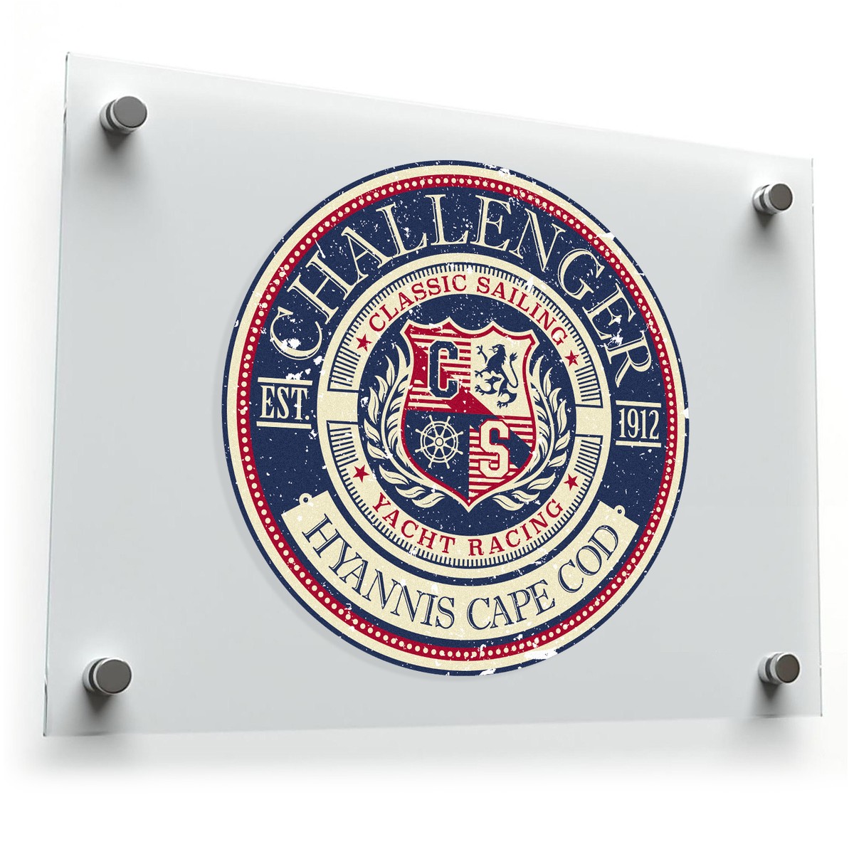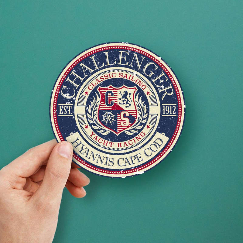 Celebrate the rich maritime tradition of Hyannis Cape Cod with this Challenger Classic Sailing Sticker. Featuring a bold crest design in vintage red, blue, and white tones, this durable vinyl decal is perfect for sailing enthusiasts and lovers of nautical aesthetics. Ideal for cars, laptops, water bottles, and travel gear, it combines stylish design with practical durability. Made from waterproof, fade-resistant vinyl, this sticker can handle both indoor and outdoor use with ease. Its retro charm adds a timeless elegance to any surface, while the peel-and-stick application ensures a smooth and residue-free experience. Available in multiple sizes for every need.