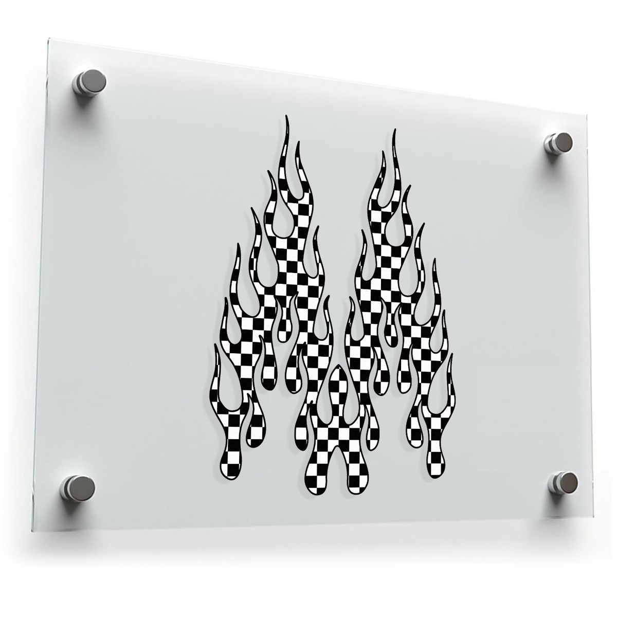 Checkered Flame Decal Set 🔥 Unique Checkered Design: This set of flame decals combines bold black-and-white checkered patterns with a dynamic flame shape, creating an eye-catching race-inspired look. 🔥