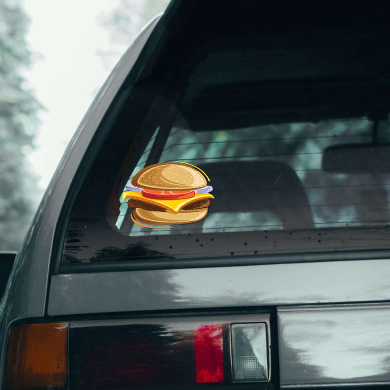 Bring fun and flavor to your space with this playful cheeseburger vinyl sticker. Featuring a vibrant and cartoon-style burger design complete with buns, cheese, and toppings, this decal is perfect for food lovers, chefs, and fast-food enthusiasts. Ideal for laptops, cars, water bottles, and walls, it’s made from premium, weather-resistant vinyl to ensure durability without fading or peeling. Its bubble-free application and residue-free removal make it suitable for both temporary and permanent decor. Available in multiple sizes, this fun food sticker adds a quirky and colorful touch to your belongings or living space.