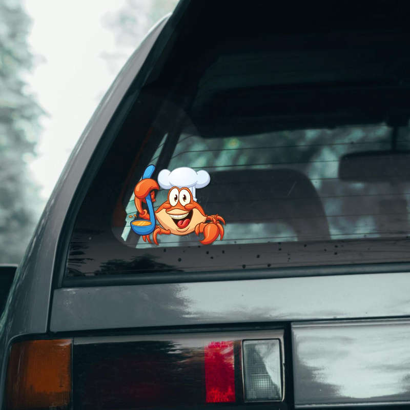 Brighten up your kitchen or restaurant with this delightful chef crab cartoon decal, showcasing a happy crab in a chef’s hat holding a ladle. The vibrant orange, blue, and white colors bring this playful character to life, adding a fun and whimsical touch to any space. Crafted from durable vinyl, this decal is designed to withstand time, resisting fading and peeling whether placed indoors or outdoors. Available in multiple size options, this easy peel-and-stick decal offers flexibility in application, allowing you to personalize your decor effortlessly. Perfect for seafood lovers, home cooks, and anyone looking to add a bit of humor to their culinary environment!