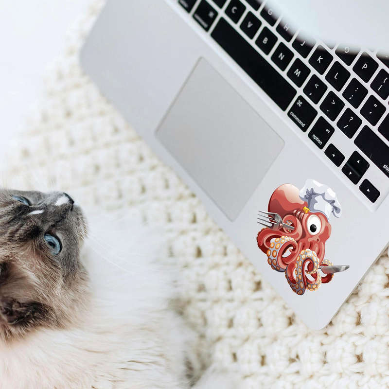 🍴 Culinary-Inspired Design: This quirky decal features an adorable octopus wearing a chef’s hat and holding utensils, making it the perfect addition to any kitchen, laptop, or foodie-themed space. 🍴