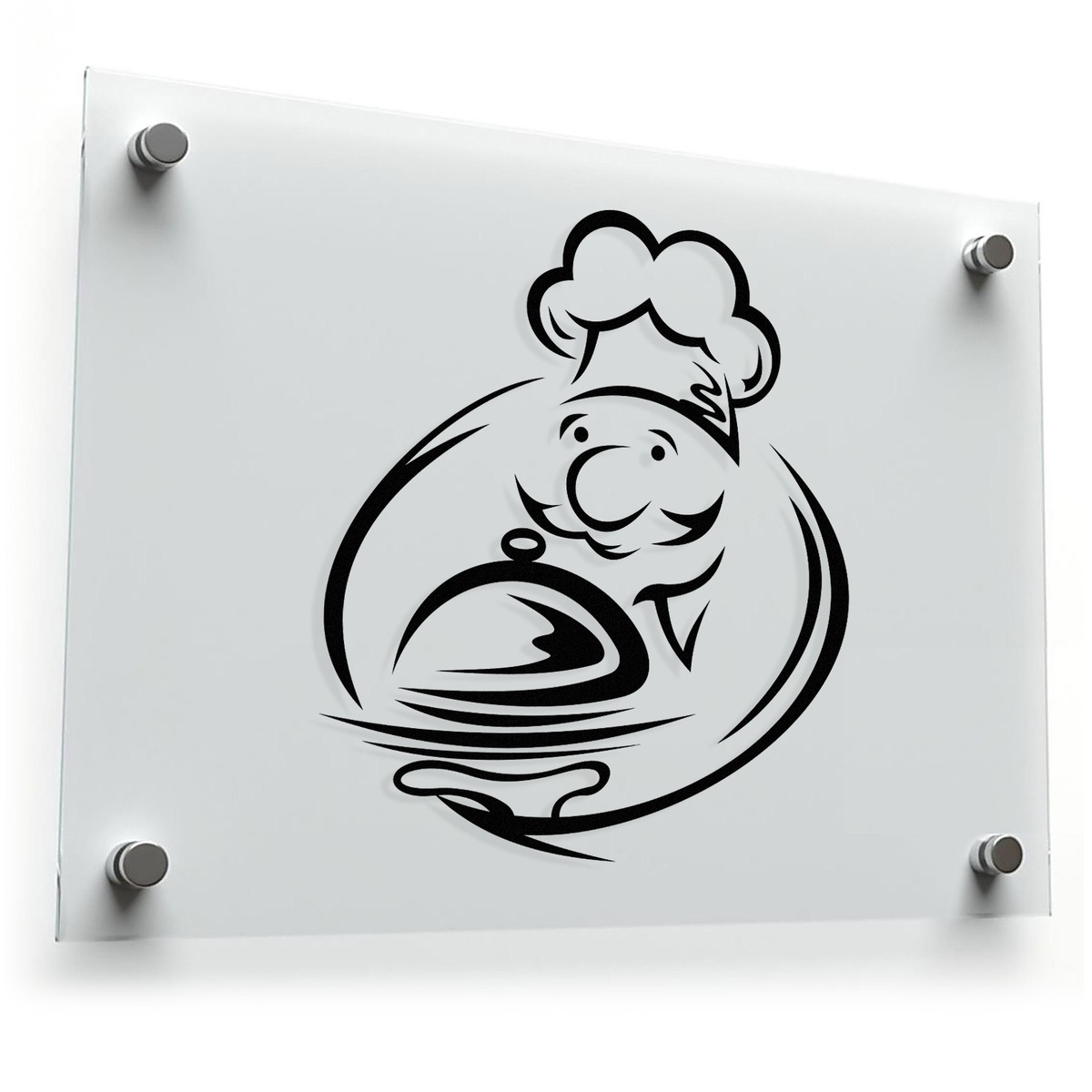 Add a touch of fun and personality to your kitchen or restaurant with this chef with food tray decal. This high-quality vinyl sticker features a cheerful cartoon chef holding a platter of delicious food, creating a warm and inviting atmosphere. The decal is perfect for decorating walls, windows, or any smooth surface. Its durable construction ensures long-lasting use, while its easy application and removal make it a convenient choice. The decal is primarily black and white, making it versatile for any color scheme. The image captures the joy of cooking and serving delicious meals. Available in Multiple Size Options.