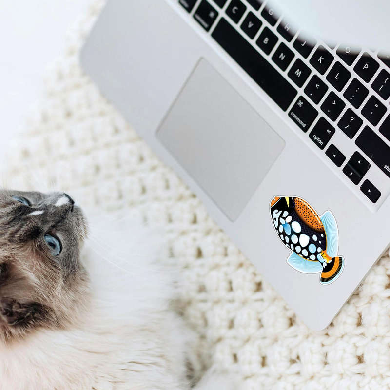 Clown Triggerfish Sticker 🐠 Vibrant Fish Design: This stunning clown triggerfish sticker captures the intricate details and bold colors of this tropical fish, making it a perfect addition for marine life enthusiasts. 🐠