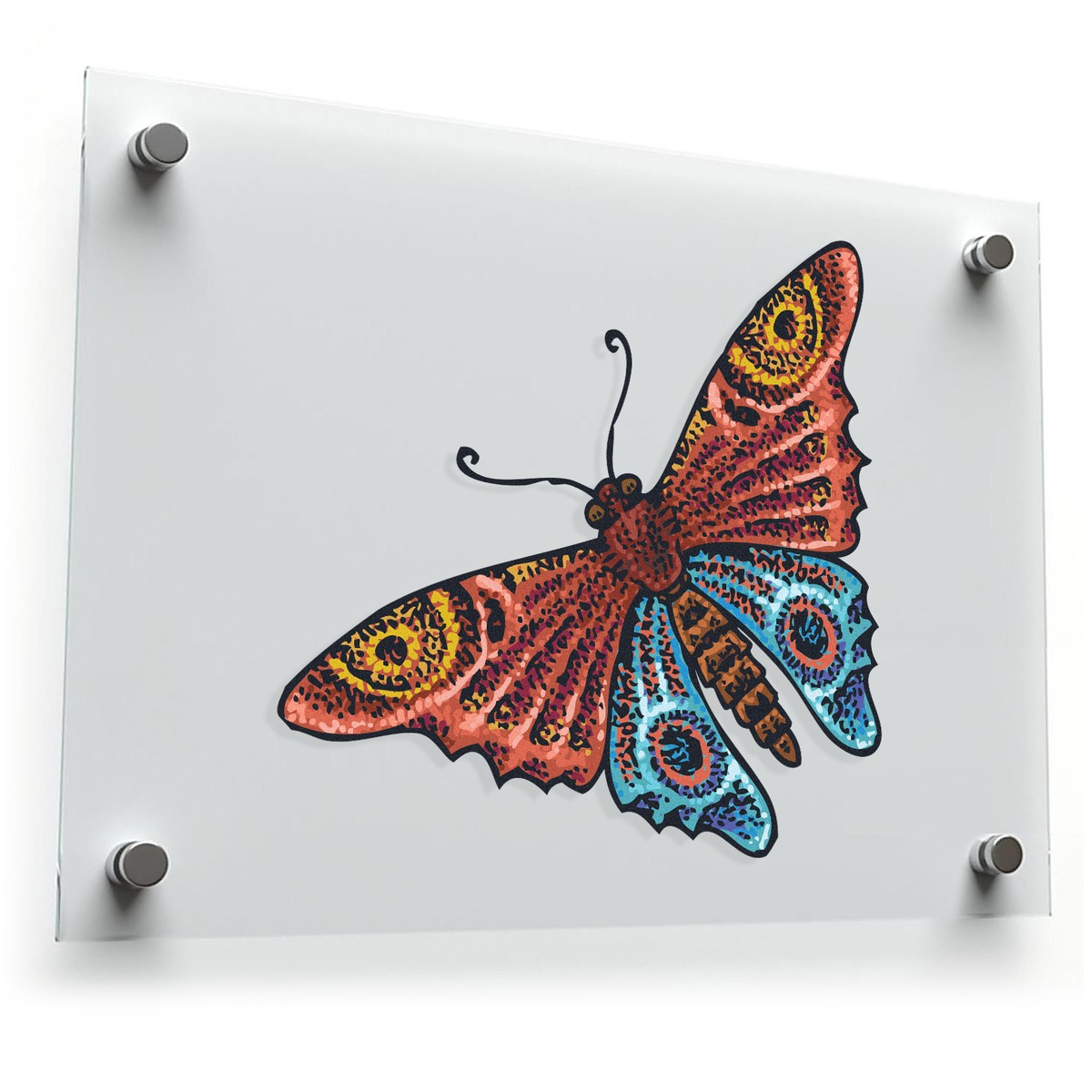 Bring the beauty of nature into your space with this colorful butterfly sticker. Featuring an intricate design in vibrant hues of red, yellow, and blue, this vinyl decal captures the grace and elegance of a butterfly in flight. Perfect for laptops, cars, walls, or any smooth surface, it’s crafted from durable vinyl that resists fading, making it suitable for both indoor and outdoor use. Available in multiple sizes, this butterfly sticker adds a splash of color and artistic flair, ideal for nature lovers and anyone looking to enhance their decor with a touch of whimsy.
