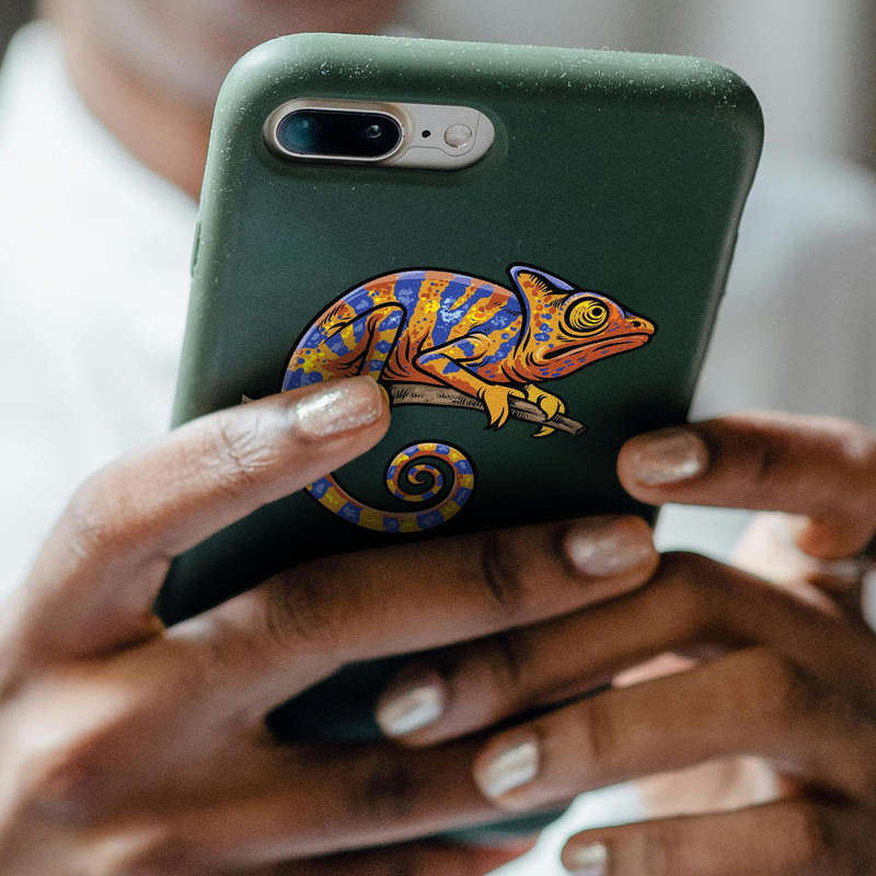 Add a vibrant touch of wildlife to your decor with this colorful chameleon vinyl sticker! Featuring a detailed and bright design, this lizard decal is perfect for placing on cars, laptops, or walls. Crafted from high-quality, waterproof vinyl, it can withstand the elements and maintain its vivid colors indoors or outdoors. Its peel-and-stick application makes it easy to apply and remove without leaving any residue. Available in multiple sizes, this sticker is ideal for animal lovers and nature enthusiasts who want to showcase their passion for reptiles in a bold and colorful way.