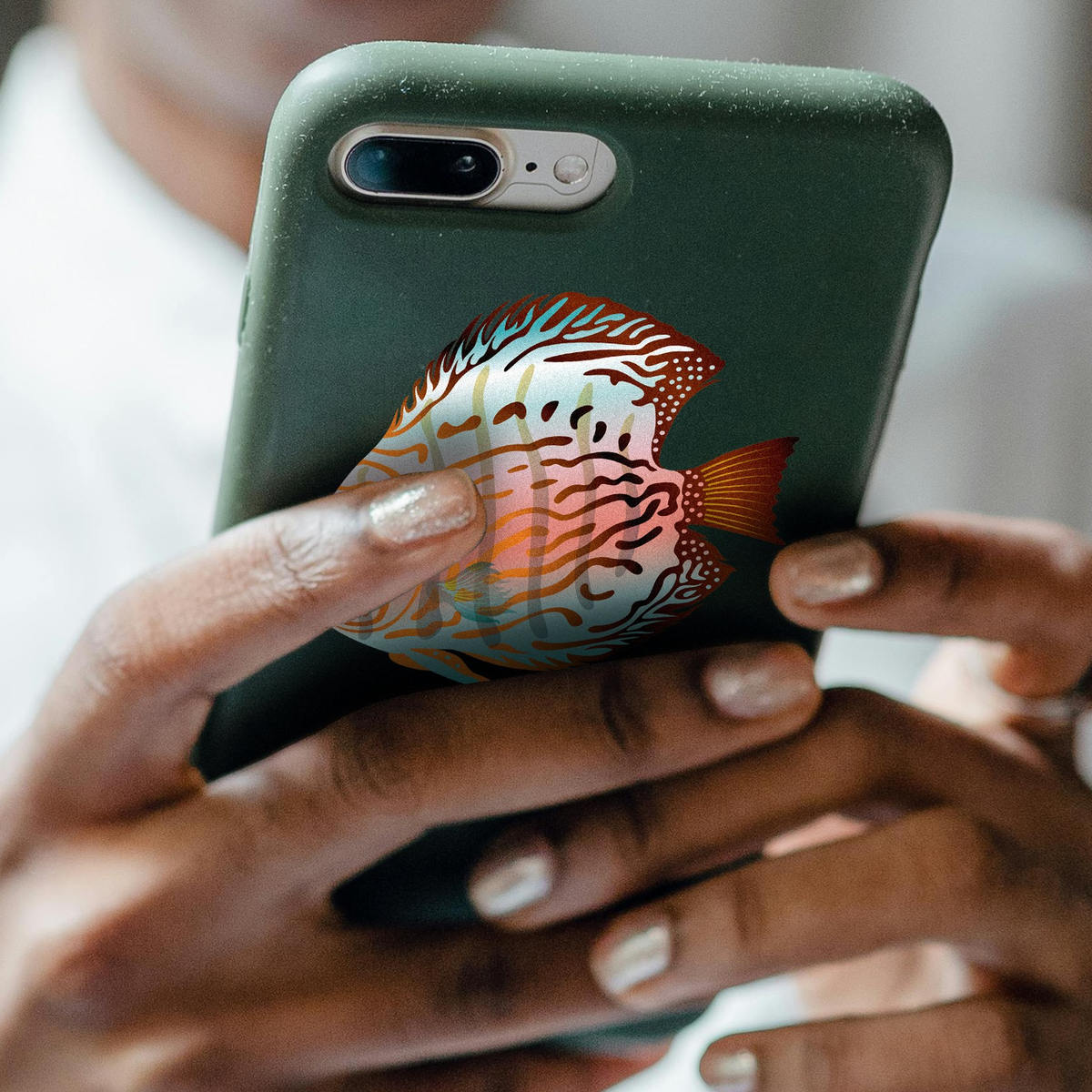 Colorful Discus Fish Vinyl Sticker 🐠 Vibrant Fish Design: This colorful discus fish sticker adds a splash of tropical beauty to your personal items, perfect for fans of aquatic life and vibrant designs. 🐠