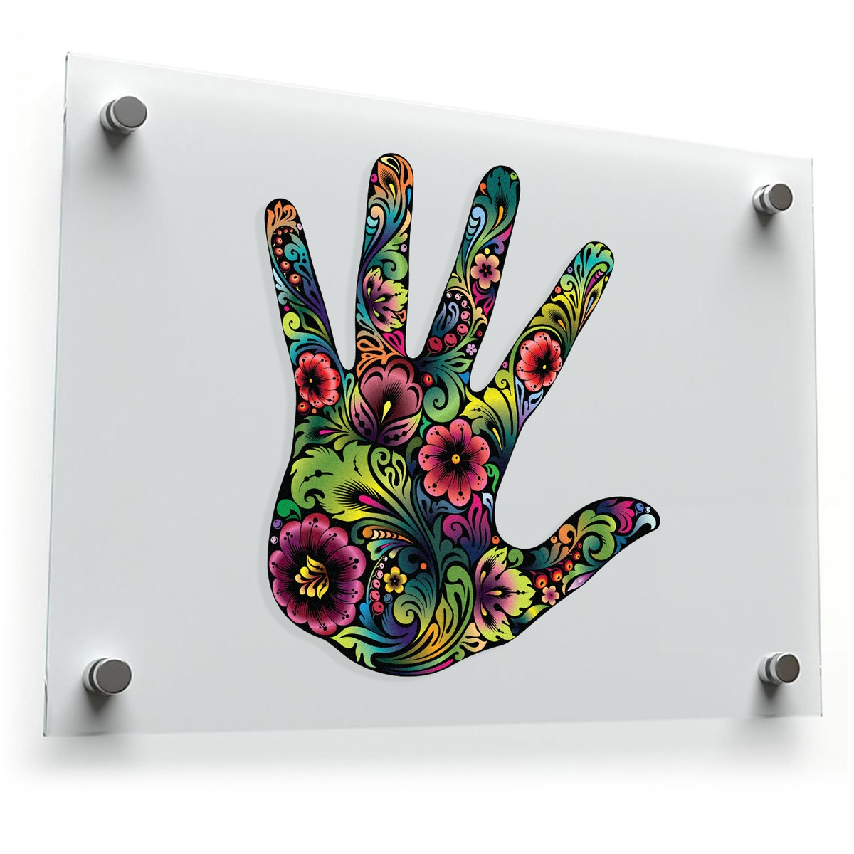 Add a burst of creativity to your decor with this colorful floral hand vinyl sticker, featuring a beautifully intricate handprint filled with vibrant floral patterns. This artistic decal is perfect for personalizing laptops, cars, water bottles, or walls, bringing a bold boho-inspired touch to your space. Crafted from premium, weatherproof vinyl, it is fade-resistant and waterproof, ensuring long-lasting durability indoors or outdoors. The peel-and-stick application makes it easy to use, while clean removal ensures no sticky residue. Whether for personal decoration or as a gift for an art lover, this sticker is a stunning addition to any collection. Available in multiple size options to fit your needs.