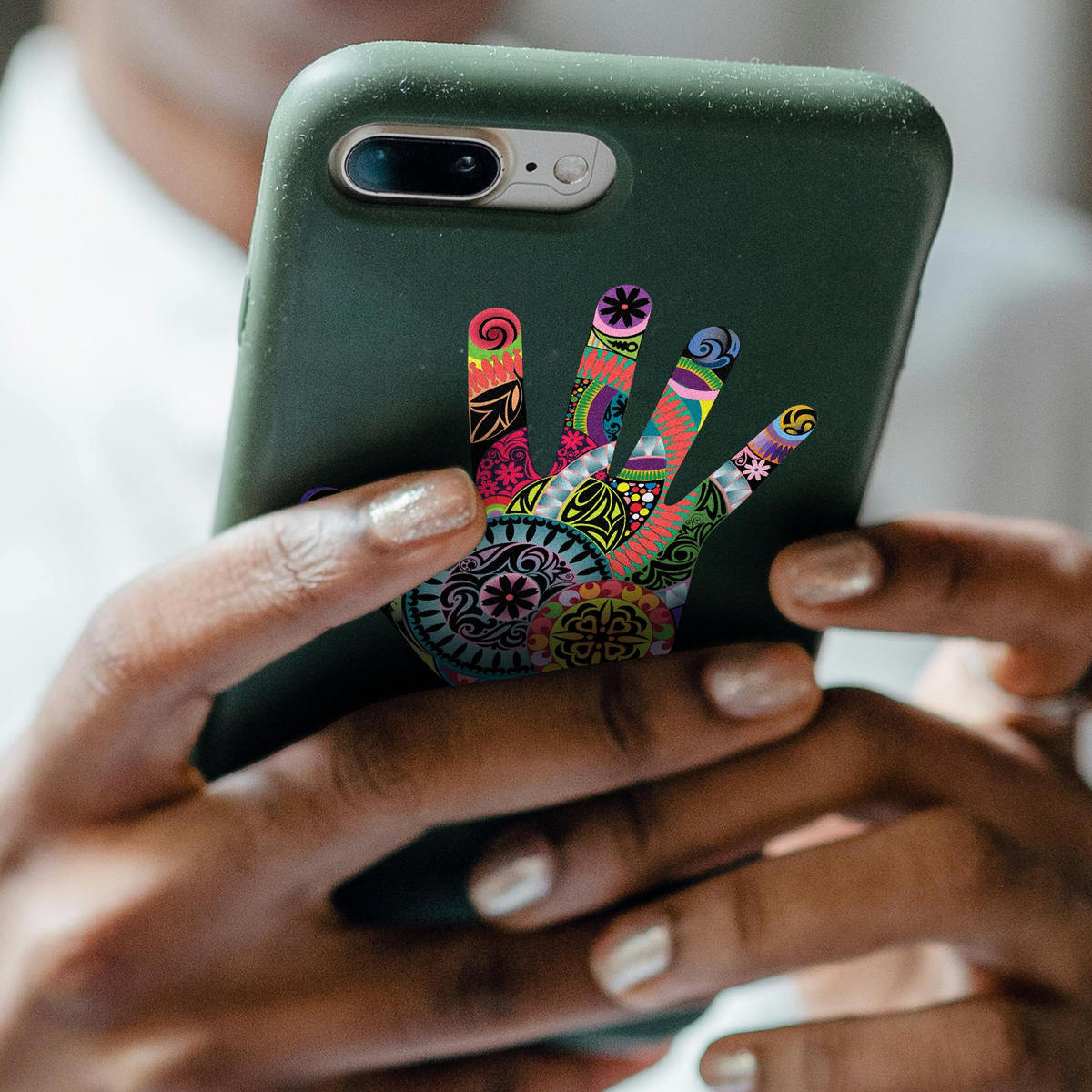 Colorful Handprint Mandala Vinyl Decal 🖐️ Vibrant Handprint Mandala Design: This colorful handprint decal features intricate mandala patterns, bringing a bold and creative vibe to any surface. 🖐️