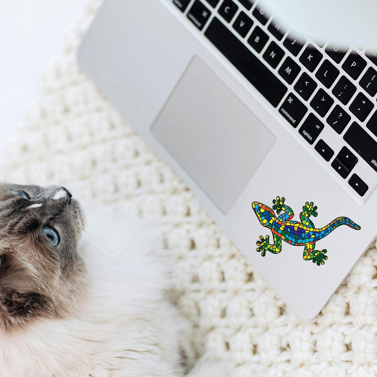 🌟 Bright and Bold: With its intricate mosaic pattern and bright colors, this gecko decal stands out, making it the perfect statement piece for anyone looking to add personality to their belongings. 🌟