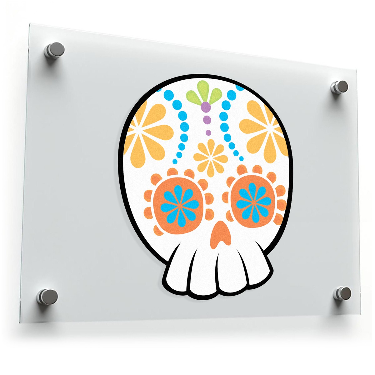 Celebrate life and tradition with this vibrant sugar skull sticker, inspired by the Day of the Dead. Featuring an intricate floral design in bright orange, blue, and yellow, this decal adds a festive charm to any surface, from laptops and cars to water bottles and notebooks. Made from high-quality, fade-resistant vinyl, this sticker is easy to apply and remove, leaving no sticky residue behind. Available in multiple sizes, it’s the perfect accessory for personalizing your belongings with a splash of color and cultural flair.