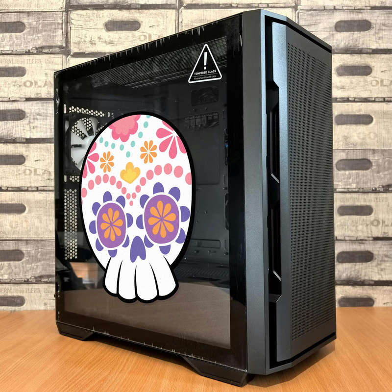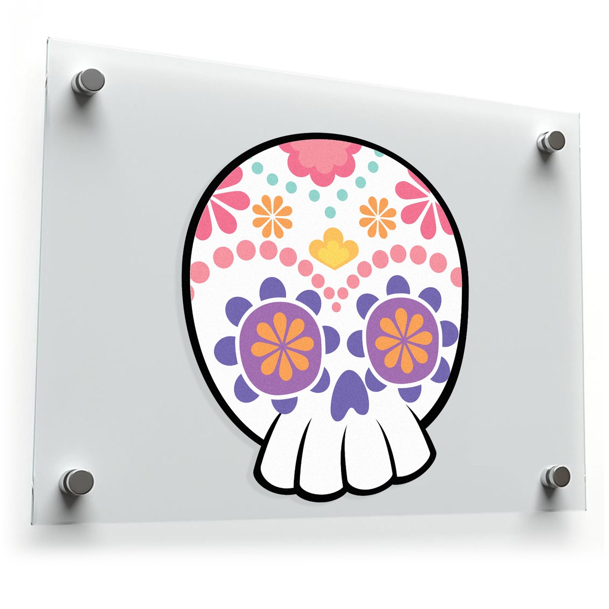 Bring festive flair to your belongings with this colorful sugar skull vinyl sticker, inspired by the vibrant traditions of the Day of the Dead. Featuring intricate floral designs in a lively palette of pink, purple, orange, and yellow, this decal adds personality and charm to laptops, cars, water bottles, and more. Crafted from durable, waterproof vinyl, it resists sun and scratches for long-lasting brilliance indoors or outdoors. With its easy peel-and-stick application and multiple size options, this sticker is perfect for showcasing your love of culture and color in style.