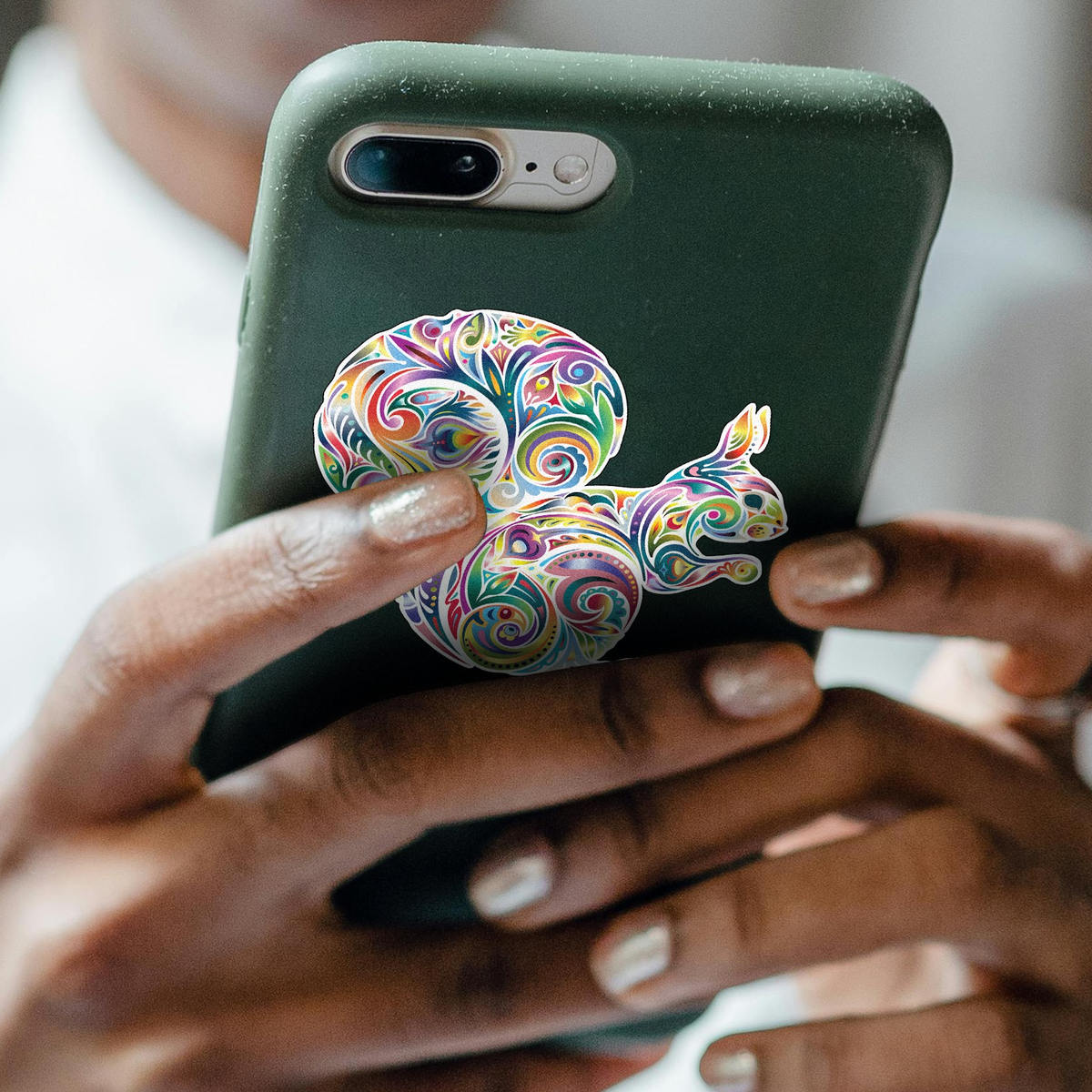 Colorful Swirl Squirrel Vinyl Sticker 🌈 Eye-Catching Design: This vibrant swirl squirrel sticker features intricate, multicolored patterns, making it a striking addition to any surface. Perfect for adding a pop of color! 🌈
