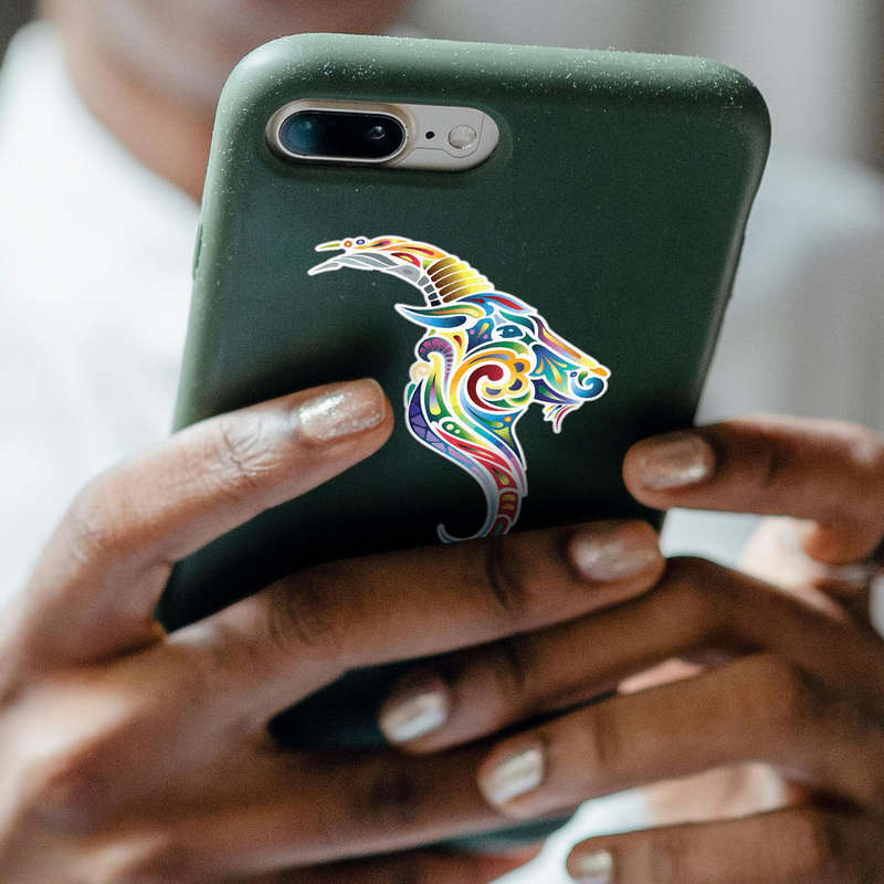 Add a vibrant touch to your surroundings with this colorful tribal goat sticker, showcasing intricate designs in rich, vivid colors. Perfect for laptops, cars, or home decor, this vinyl decal captures the spirit of wildlife with an artistic flair, making it an ideal choice for nature lovers and art enthusiasts alike. Made from durable, waterproof vinyl, it maintains its bright appearance indoors and out, with easy application and residue-free removal. Available in multiple sizes, this unique goat sticker brings personality and charm to any setting, making it a fantastic gift for those who appreciate nature-inspired art.