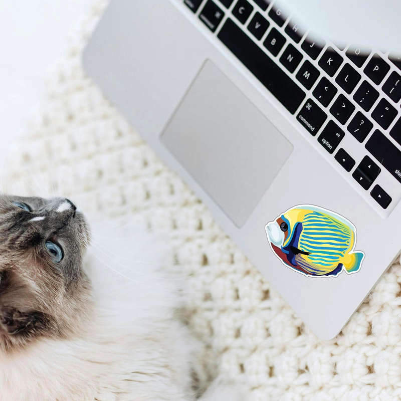 Add a splash of oceanic color to your favorite surfaces with this vibrant tropical fish vinyl sticker. Featuring a detailed marine design with eye-catching yellow, blue, and green hues, this decal is perfect for cars, laptops, water bottles, coolers, and more. Crafted from durable, waterproof vinyl, it’s designed to resist fading and withstand outdoor elements, ensuring long-lasting beauty. Easy to apply and remove without residue, this sticker brings the charm of tropical marine life to any space. Ideal for ocean lovers, aquarium enthusiasts, or anyone who loves bright and colorful designs, this versatile decal is available in multiple sizes to suit your decorating needs.