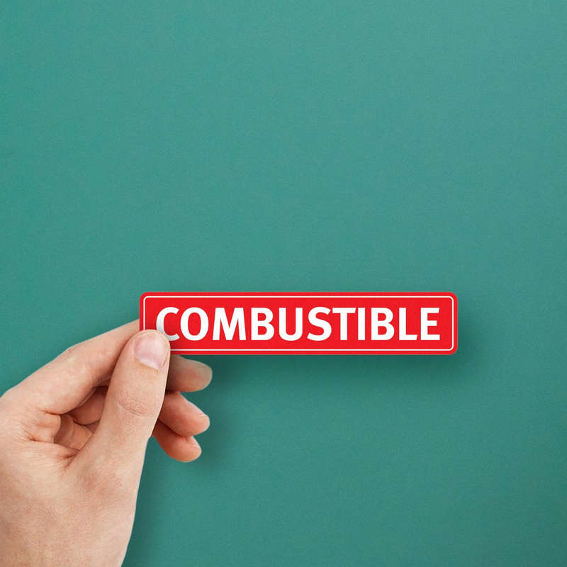 Ensure workplace safety with this bold “Combustible” safety sticker, designed for easy identification of fire hazards. Made from durable vinyl, it is resistant to environmental factors, making it perfect for both indoor and outdoor use in industrial settings. The clear, bold red and white design enhances visibility, ensuring immediate recognition. This sticker is easy to apply and helps businesses meet workplace safety regulations, while also being available in multiple size options to suit various needs.