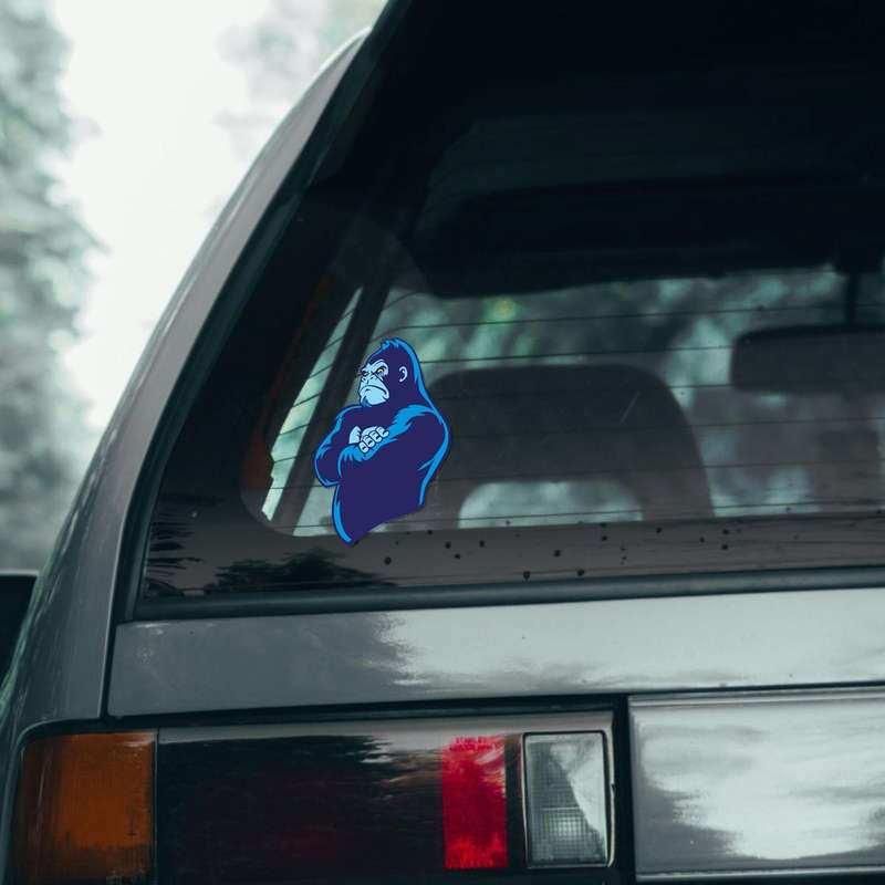 Add a touch of power and confidence to your belongings with this bold blue gorilla sticker. Featuring a striking design of a confident gorilla, this high-quality vinyl decal is perfect for decorating laptops, cars, water bottles, and more. Its durable, weatherproof material ensures that it lasts in any environment, while the easy application and residue-free removal make it a convenient choice. Available in multiple sizes, this sticker is ideal for anyone who loves bold animal art and wants to showcase their adventurous spirit.