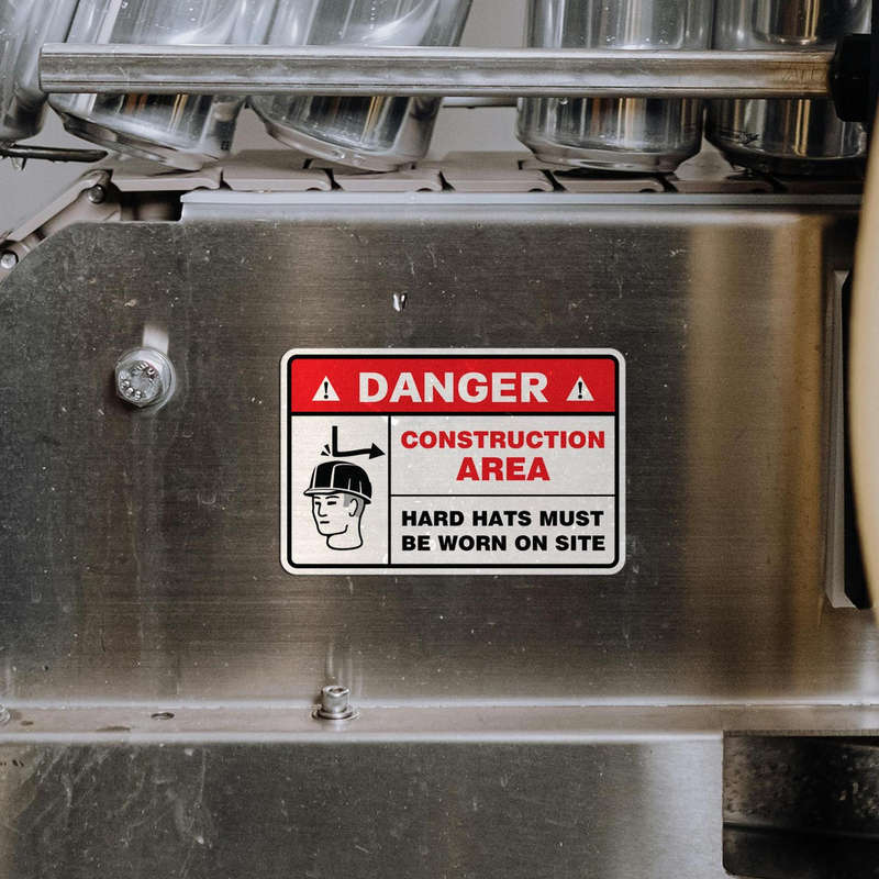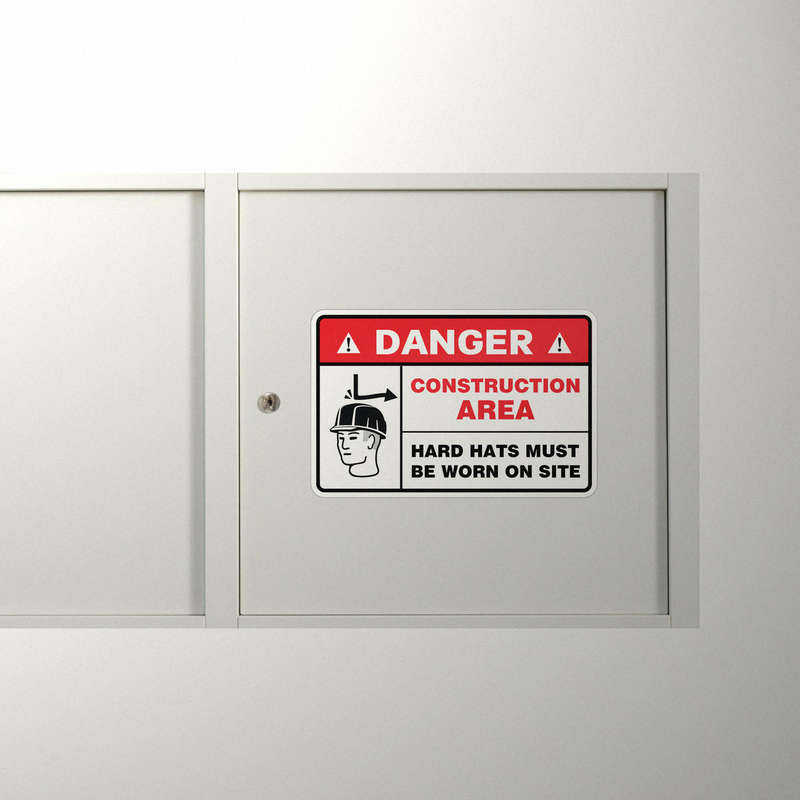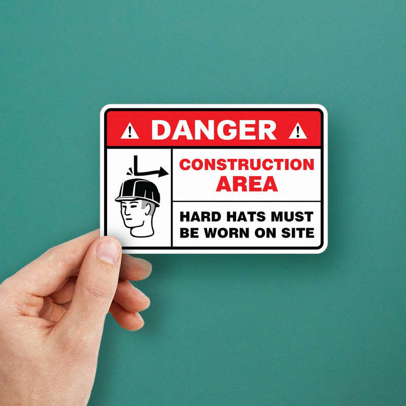 Construction Area Warning Sticker – “Danger: Hard Hats Must