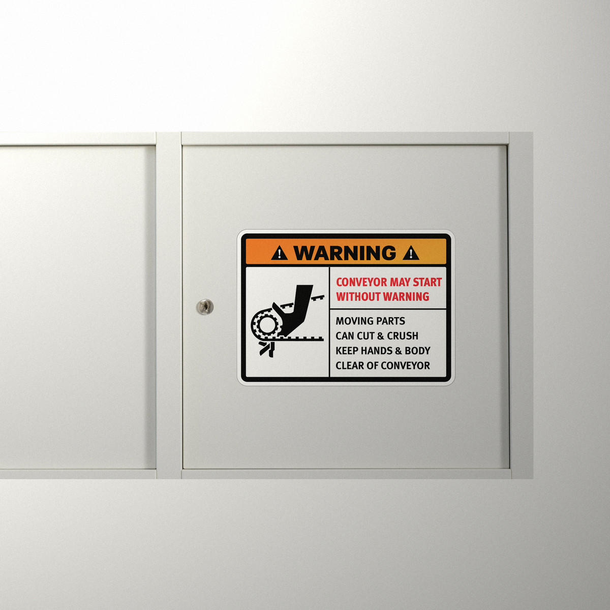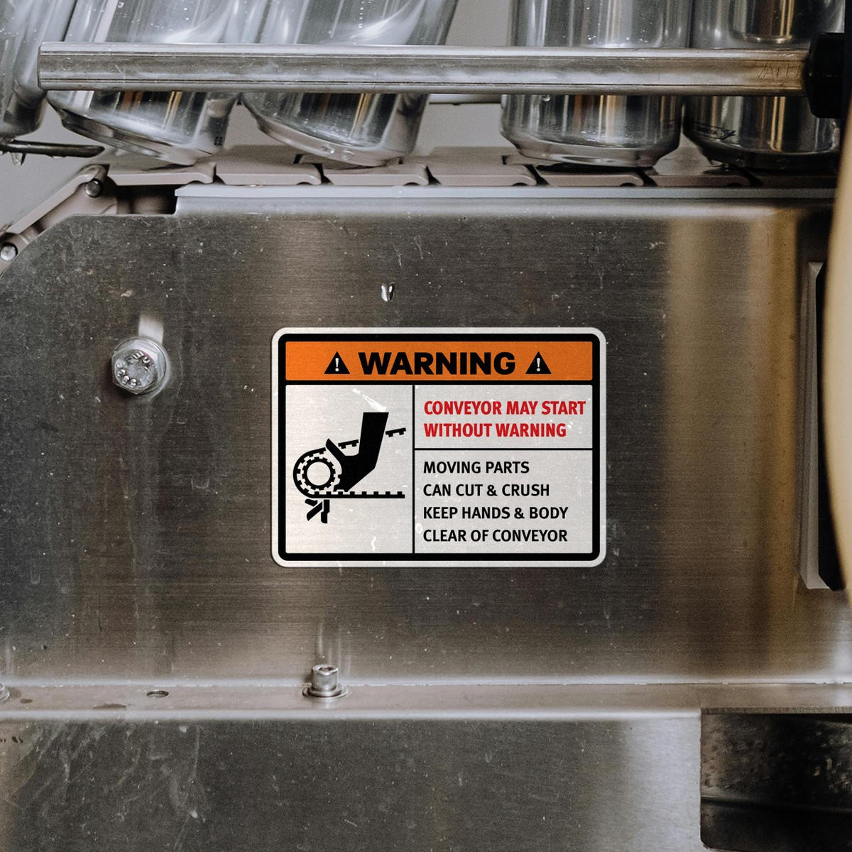 🏭 Promotes Safety Compliance: Perfect for factories, workshops, and industrial work zones, this decal enhances safety by clearly marking the dangers of conveyors and moving parts. 🏭
