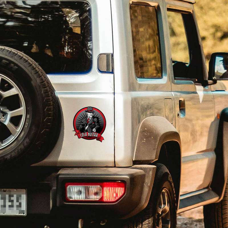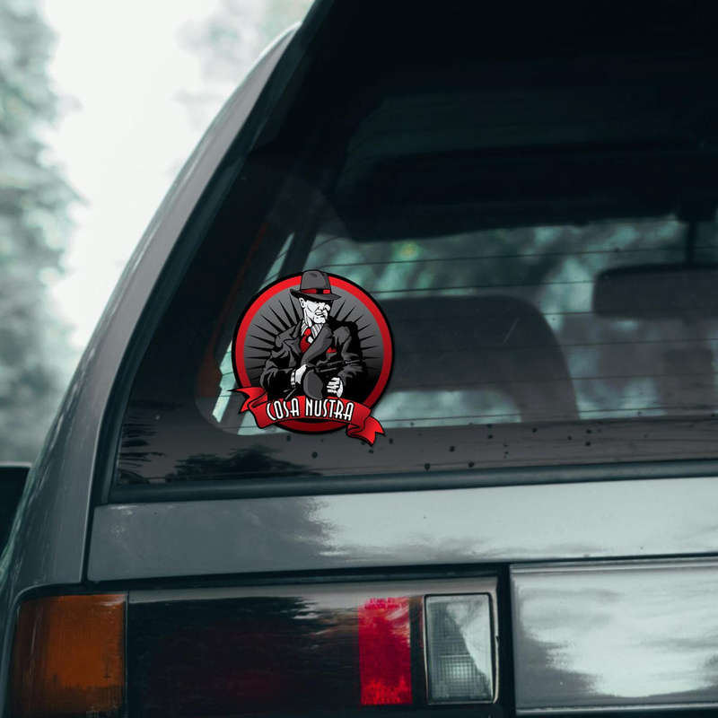 Embrace the boldness of the mafia lifestyle with this striking Cosa Nostra gangster vinyl sticker. Featuring a fearless mobster design, this high-quality waterproof decal is perfect for cars, laptops, and walls. Made from durable vinyl, it withstands outdoor conditions while maintaining its vibrant colors. The easy peel-and-stick application makes it a breeze to apply or remove without leaving any sticky residue behind. Available in multiple sizes, this sticker is a must-have for fans of mafia culture or anyone looking to add a bold and stylish touch to their personal items or decor.